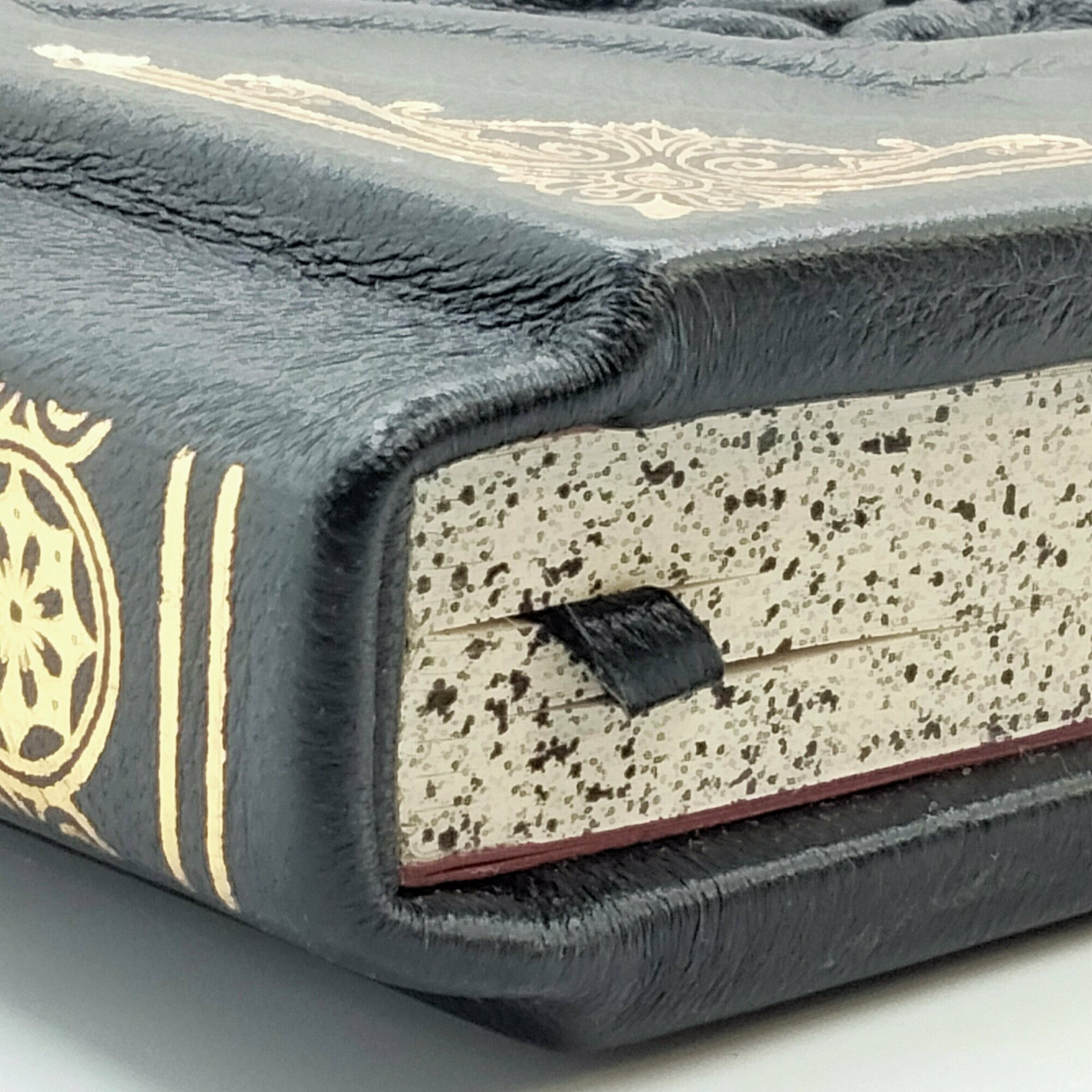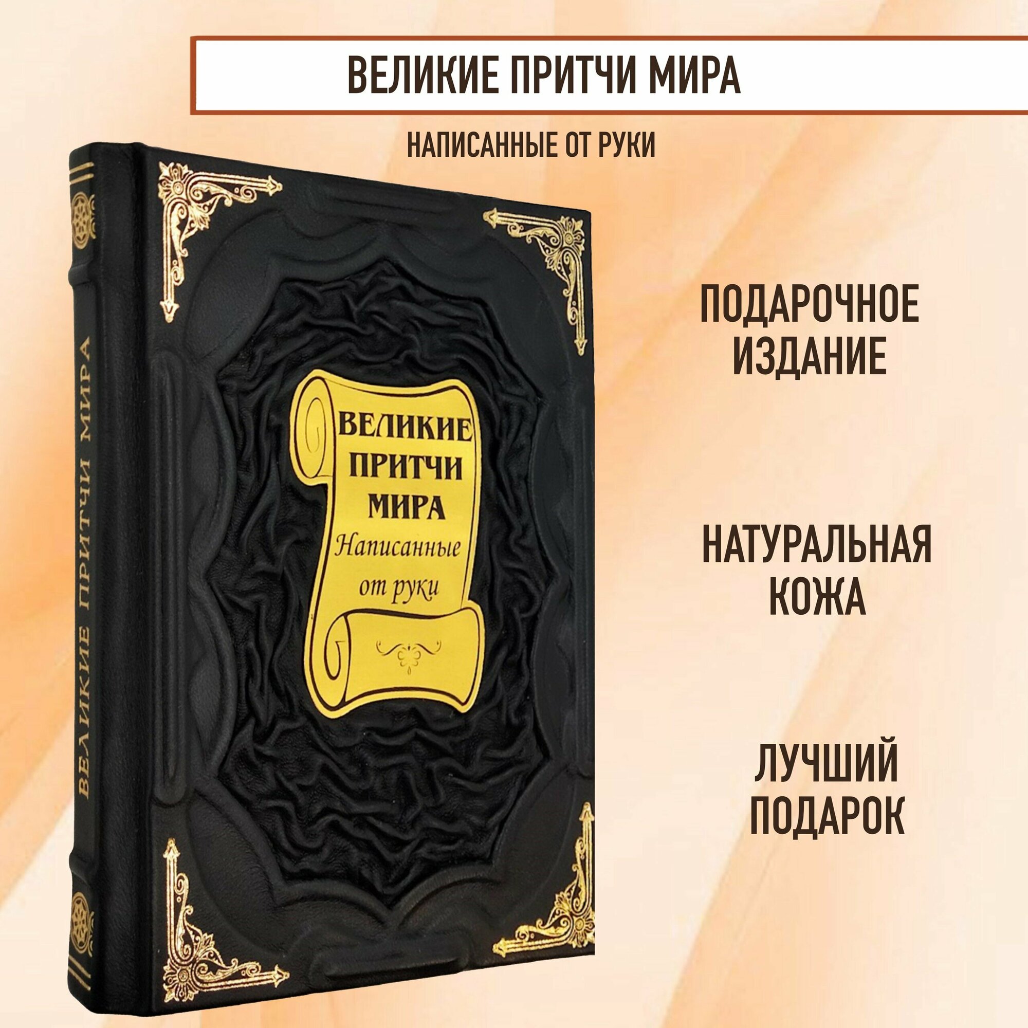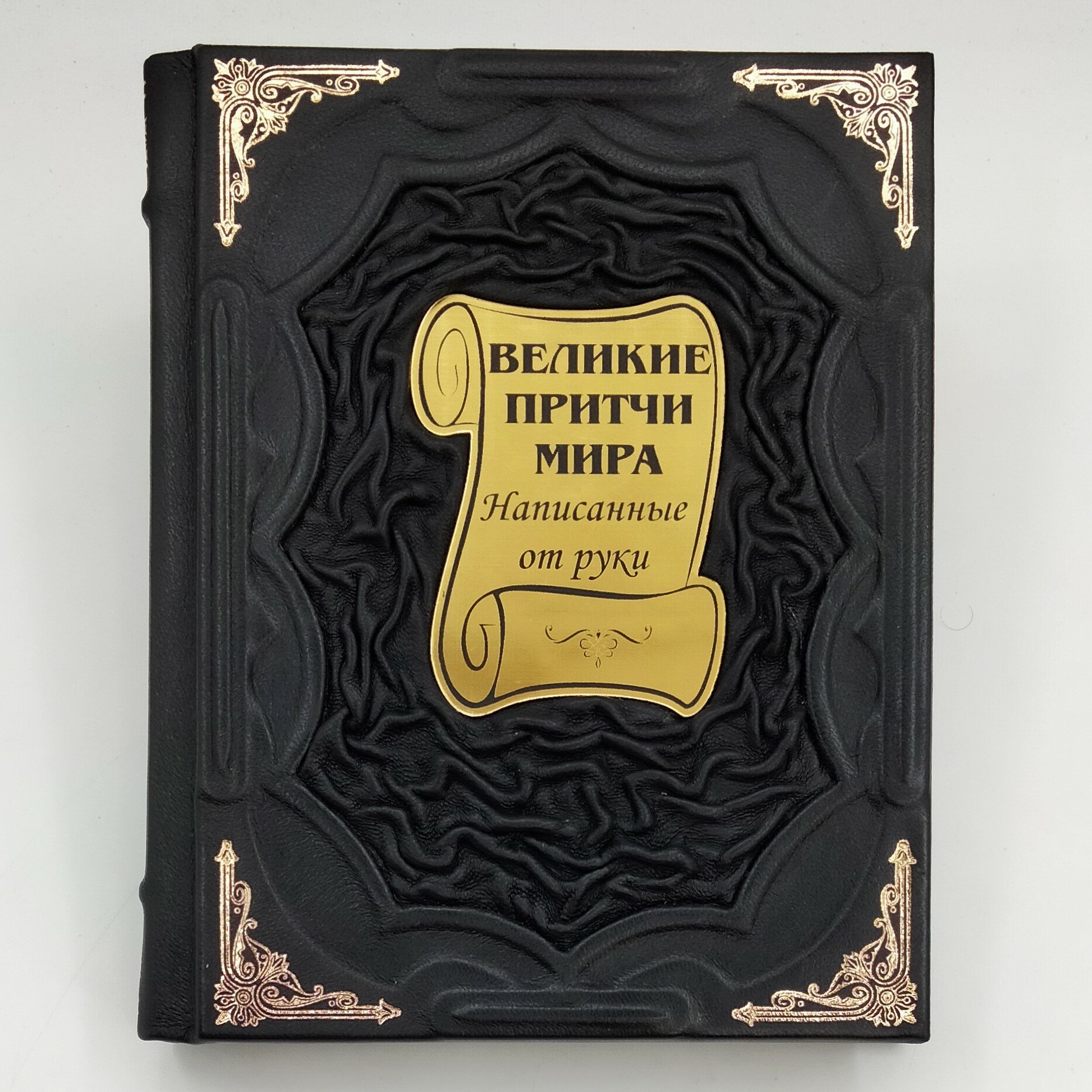 Это подарочное издание с рукописный шрифтом, украшенное золотым тиснением и отпечатанное на бумаге, стилизованной под пергамент.