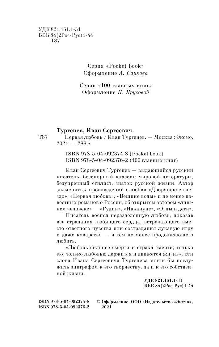 Книга: Первая любовь (Тургенев Иван Сергеевич); ООО "Издательство "Эксмо", 2018