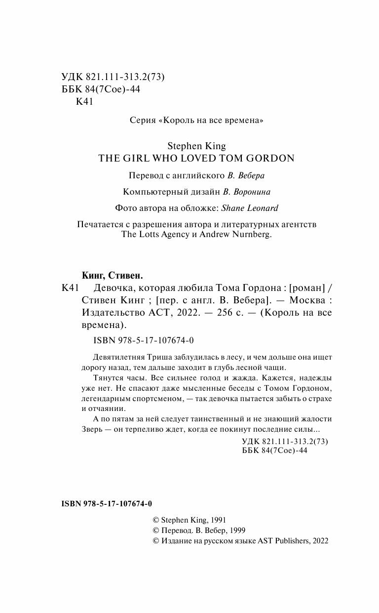 Девочка которая любила Тома Гордона (Кинг Стивен , Вебер Виктор Анатольевич (переводчик)); АСТ, 2022