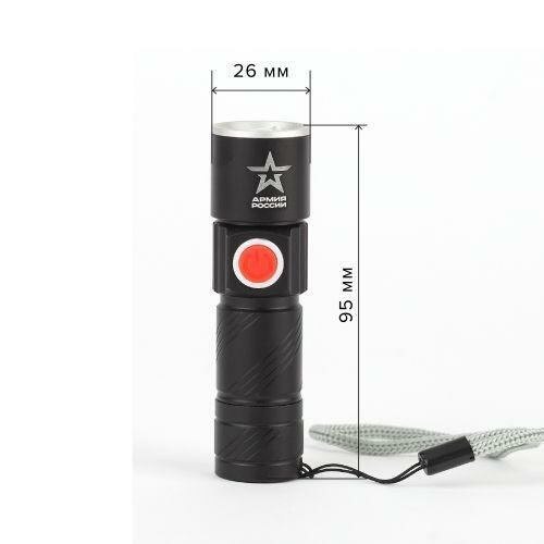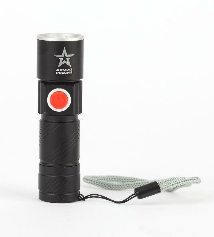 Туризм Эра Миниатюрный ручной фонарик ЭРА из серии «Армия России» - надежный источник света в любых бытовых или походных ситуациях. Модель имеет сверхпрочный корпус из анодированного алюминия, яркий светодиод, обеспечивающий дальность луча до 186 метров, три режима свечения и плавную регулировку фокуса. Встроенный литиевый аккумулятор (600 мАч) с возможностью подзарядки через USB рассчитан на 2 часа непрерывной работы.