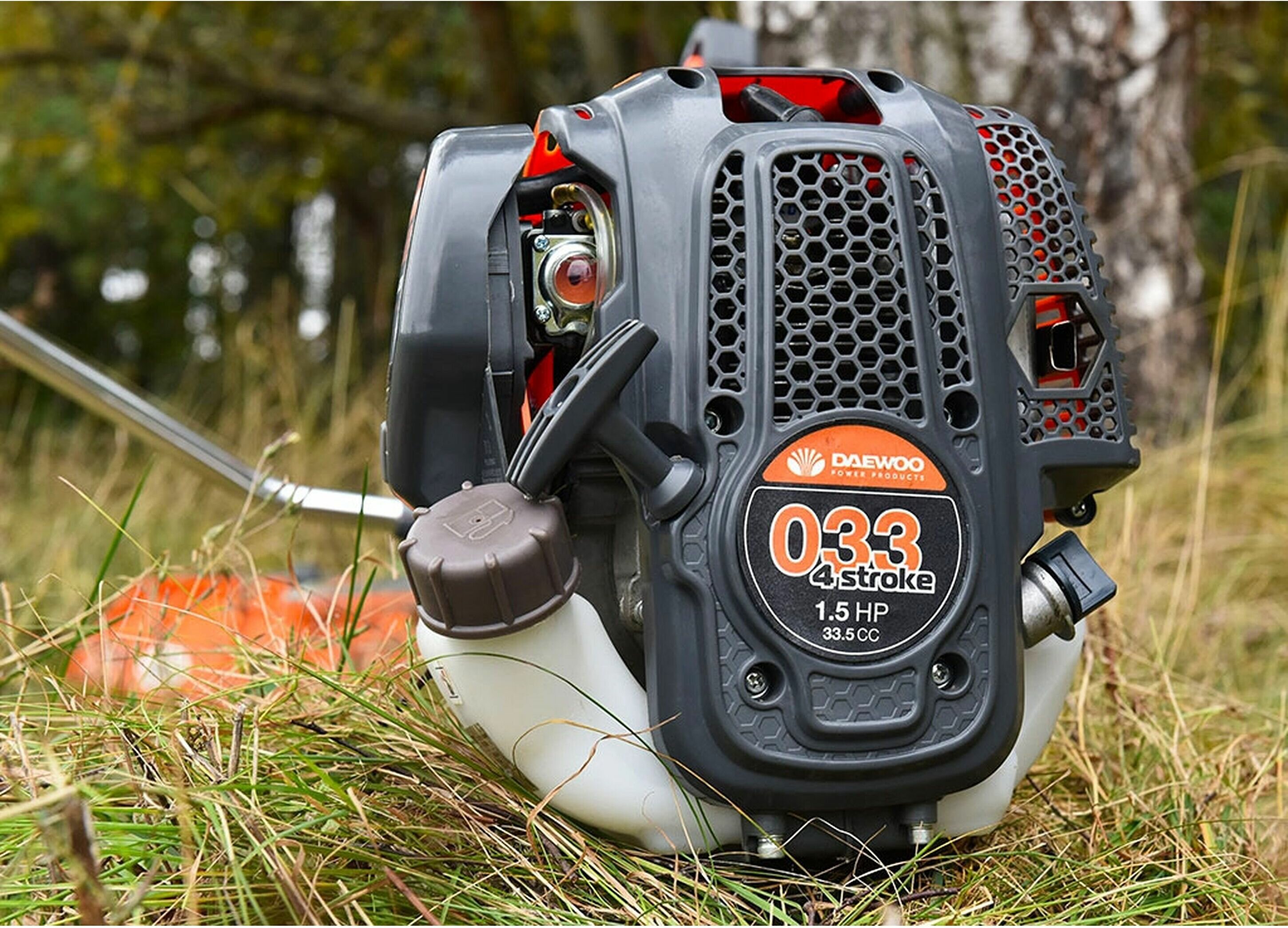 - 4-х тактный бензиновый двигатель собственной разработки DAEWOO 4-stroke 033 отличается высокой производительностью благодаря увеличенному крутящему моменту (6500 об/мин).