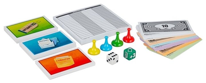 Игроки будут получать письма с штрафами и счетами, покупать вещи, затем перепродавать их с выгодой для себя, участвовать в событиях, которые могут и обогатить, и обанкротить. В конце месяца каждому начисляется зарплата, и наступает время расчёта: подведя итоги, выигрывает тот, кто сэкономил больше остальных. Интересная игра с элементами неожиданности (как в жизни) научит детей обращению с деньгами, подтянет навыки счёта и развлечёт всю семью.