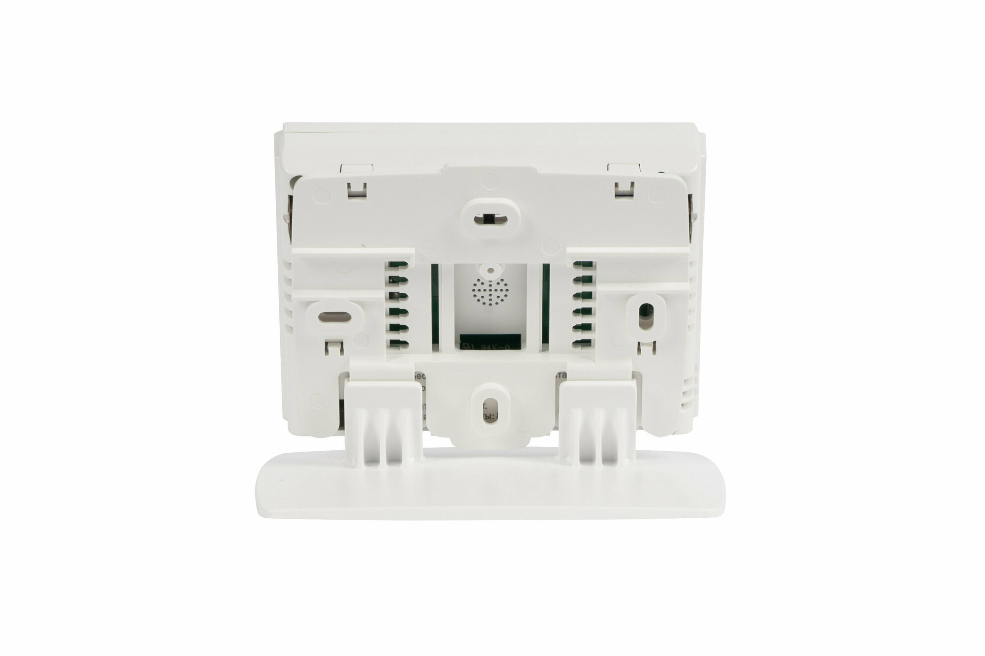 Беспроводной программируемый комнатный термостат. Питание термостата от двух батарей типа АА, 2 шт. Питание приемника 220 В±10%, 50 Гц. Беспроводная частота сигнала 868 МГц. Радиус беспроводного соединения на открытой местности до 100 м. Контакты реле до 250 В, 3 А. Температура регулировки от 5 °С до 35 °С. Гистерезис ±0,5 °С. Большой LCD дисплей. Индикация температуры в помещении. Индикация состояния котла. Индикация разряда батарей. Индикация неисправности системы. Часы реального времени. Калибровка температуры. Установка ограничения максимальной и минимальной температуры. Установка индивидуальной программы для каждого из 7 дней недели. Установка значения гистерезиса. Функция защиты насоса. Функция защиты системы от замерзания. Функция отпуск. Функция фиксации температуры. Работа с нормально открытой или нормально закрытой логикой. Прямое подключение к термоприводу или котлу.