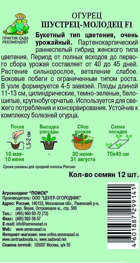 Огурец Шустрец-молодец F1 Поиск 12шт
