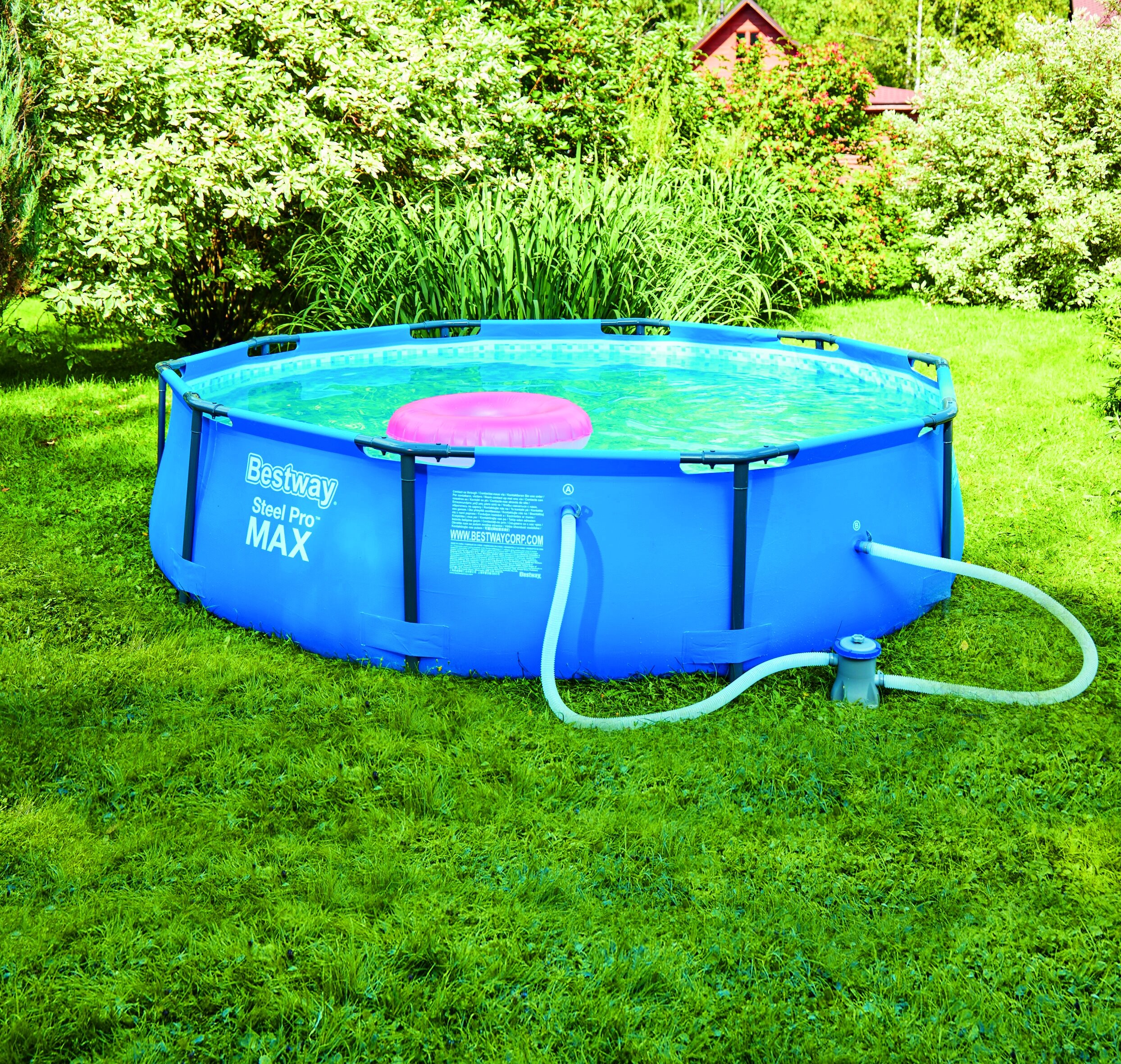 Бассейн каркасный круглый Bestway Steel Pro MAX - устойчивая разборная конструкция с прочной чашей объемом 6473 литров для организации летнего отдыха на свежем воздухе.