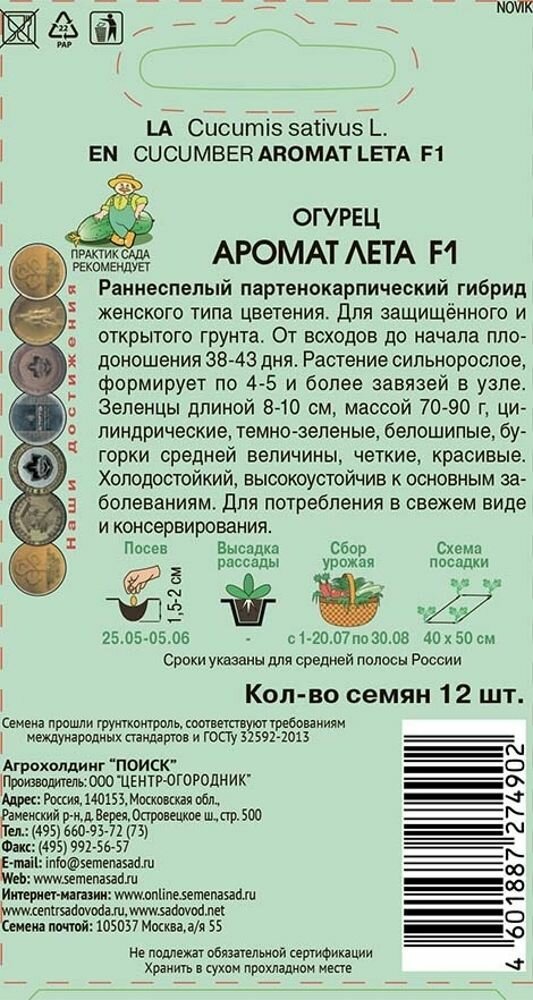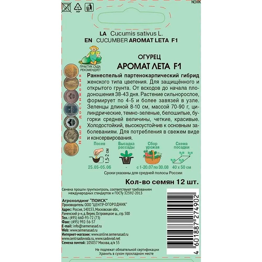 Огурец Аромат лета F1 Поиск 12 шт