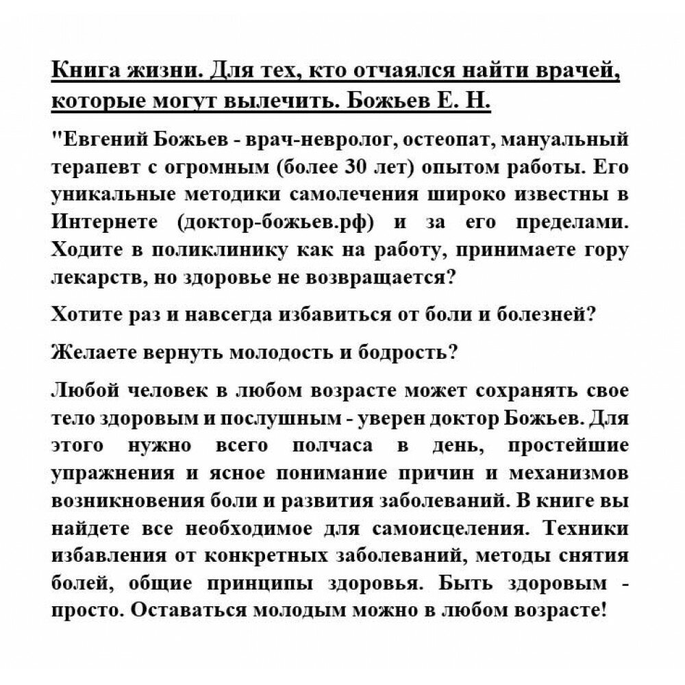 Книга жизни. Для тех кто отчаялся найти врачей которые могут вылечить (Евгений Божьев); Питер (Айлиб), 2018