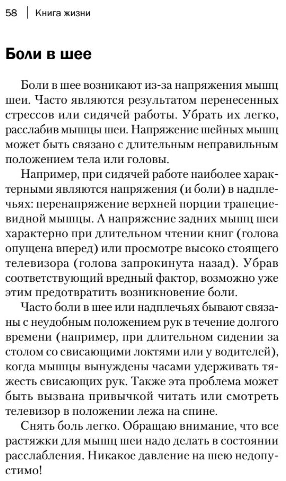 Не вполне систематизирована, встречаются небольшие повторы, но все равно – очень полезная книга. Для начала достаточно просмотреть, чтобы уяснить общую концепцию автора, а в дальнейшем использовать в качестве справочника для решения конкретных проблем. Методы устранения боли – действенные, в чем убедился, проверив на себе немедленно, в процессе чтения. Рекомендую.