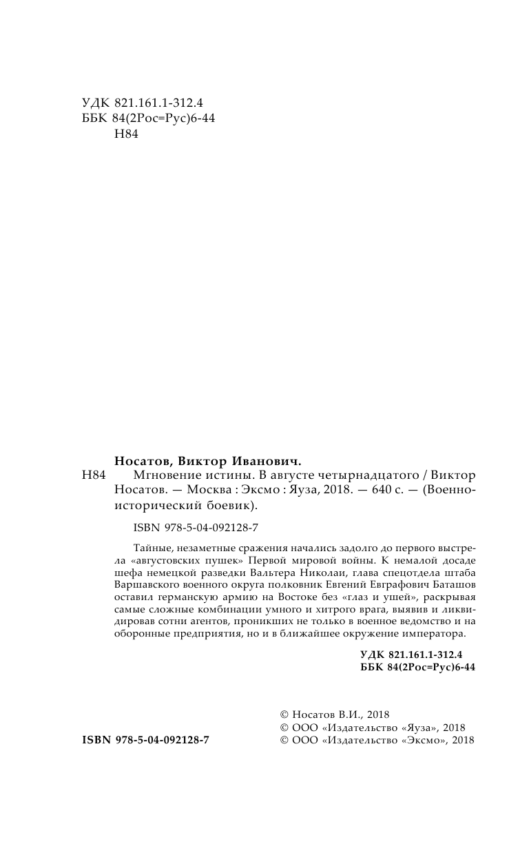 Мгновение истины. В августе четырнадцатого (Носатов Виктор Иванович); ООО "Издательство "Эксмо", 2018