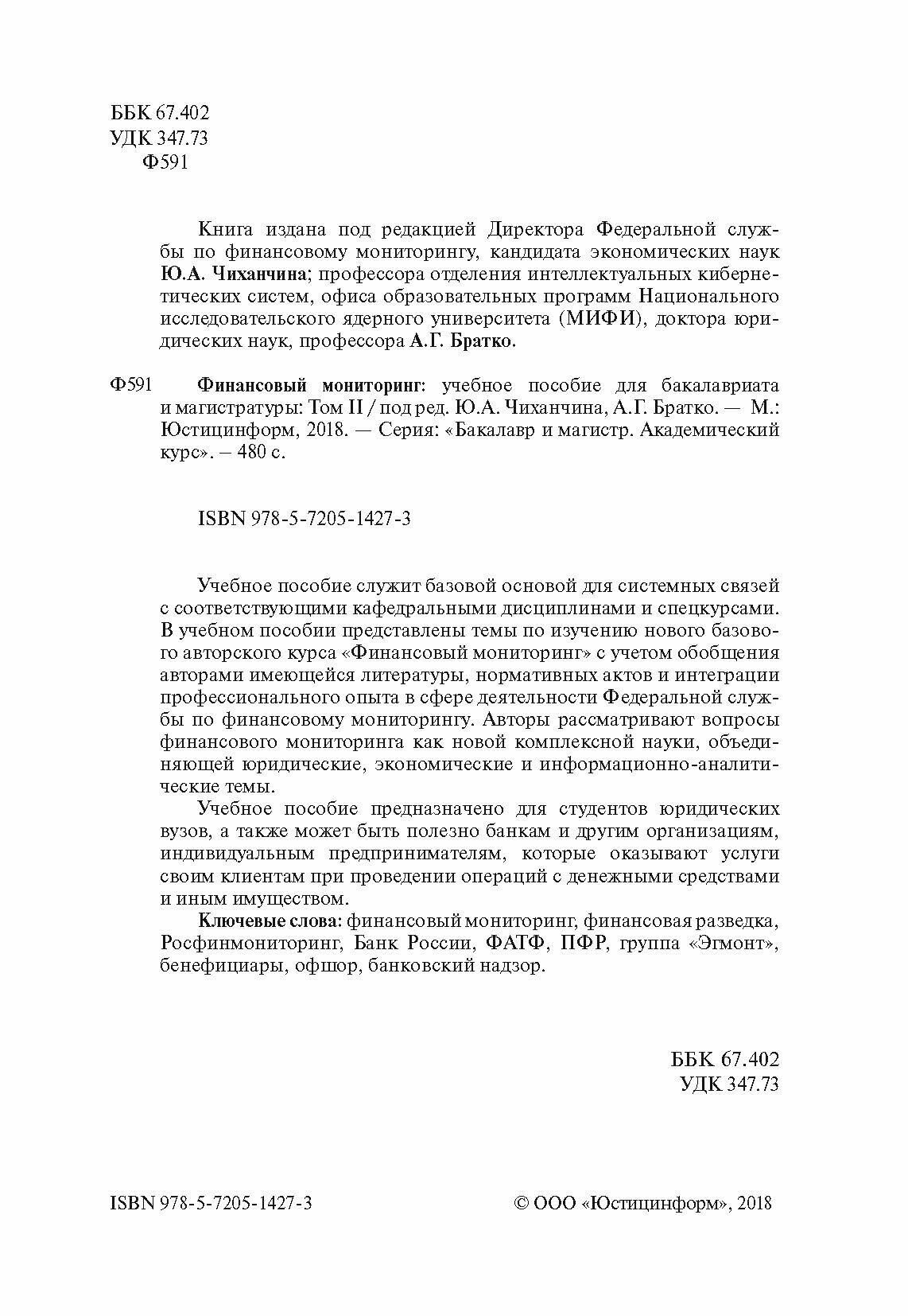 Финансовый мониторинг. Учебное пособие. Том 2 (Коллектив авторов); Юстицинформ, 2018