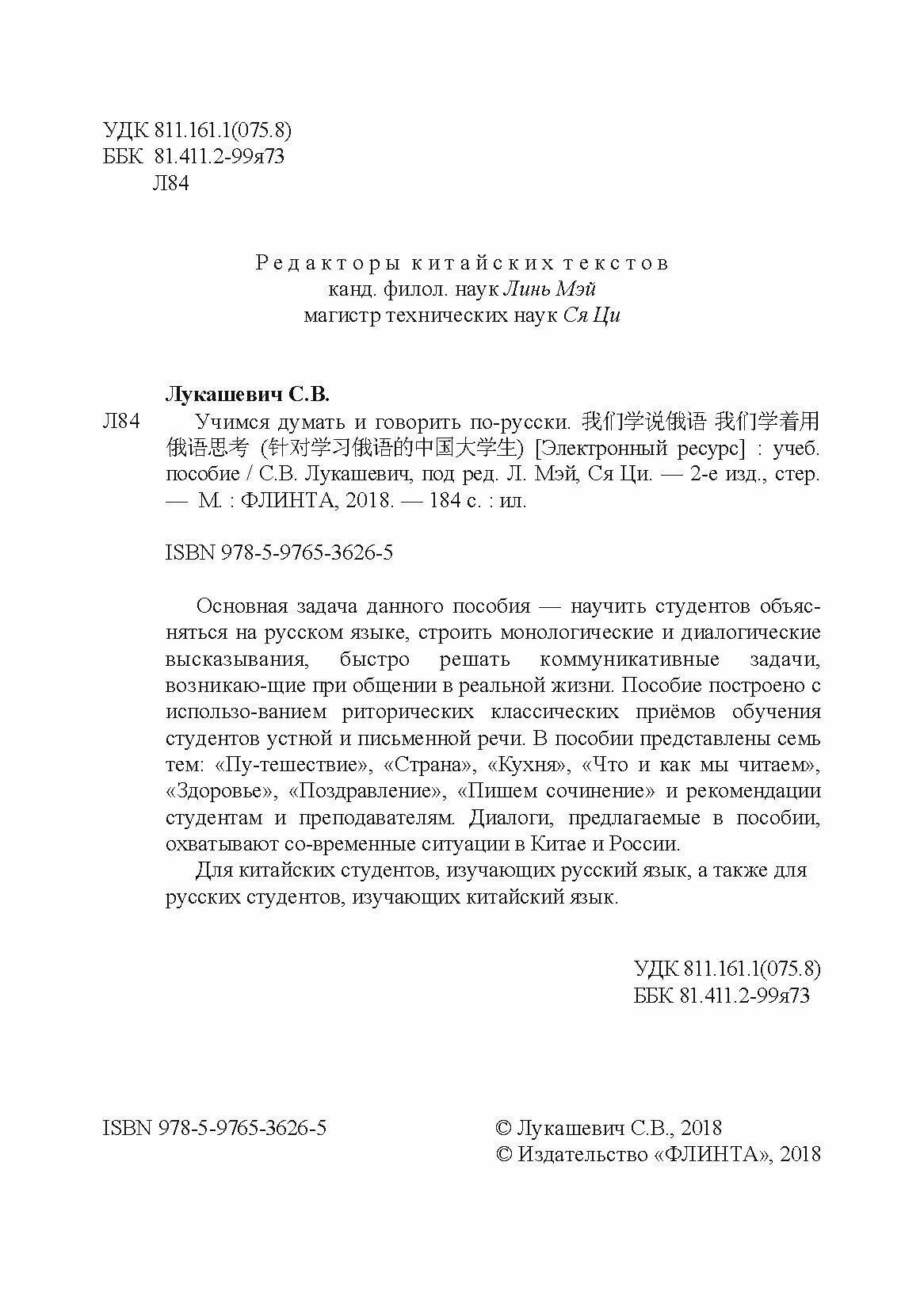 Учимся думать и говорить по-русски. Учебное пособие (Лукашевич Светлана Викторовна); Флинта, 2019