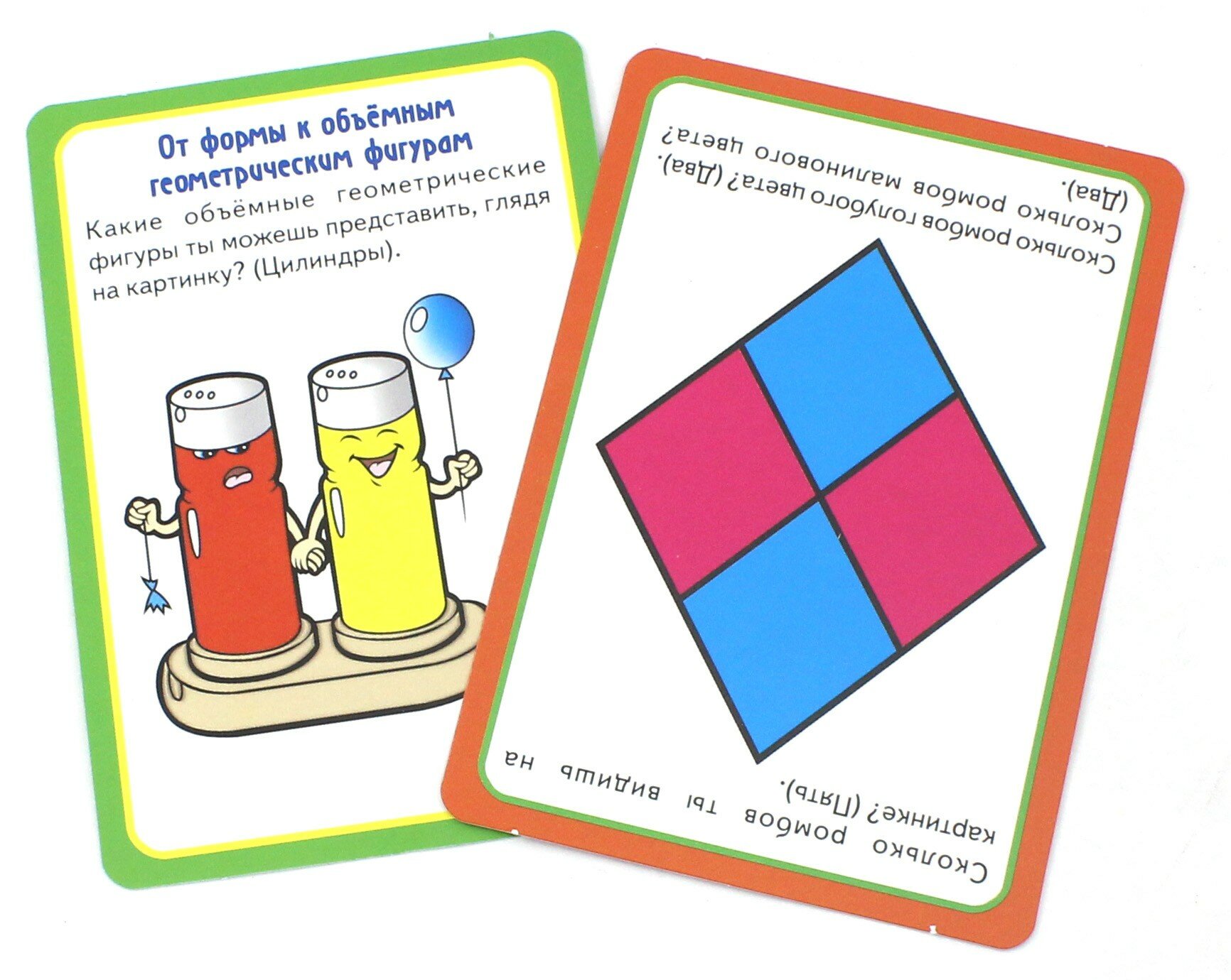 Занятия с использованием карточек помогут детям в игровой форме познакомиться с основными плоскими и объёмными геометрическими фигурами, находить их в формах окружающих предметов.