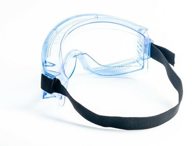 Очки с прямой вентиляцией с панорамным защитным бесцветным стеклом из поликарбоната (РС super) с незапотевающим покрытием изнутри, снаружи устойчивым к истиранию и царапанию. Мягкий корпус из ПВХ. Регулируемая наголовная лента. Обеспечивают защиту глаз от высокоскоростных летящих частиц со среднеэнергетическим ударом, абразива, капель жидкостей (в т.ч. химических растворов), УФ-излучения, от искр и брызг расплавленного металла и высокой температуры.