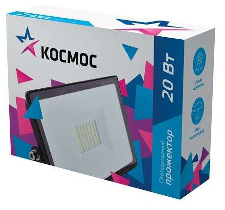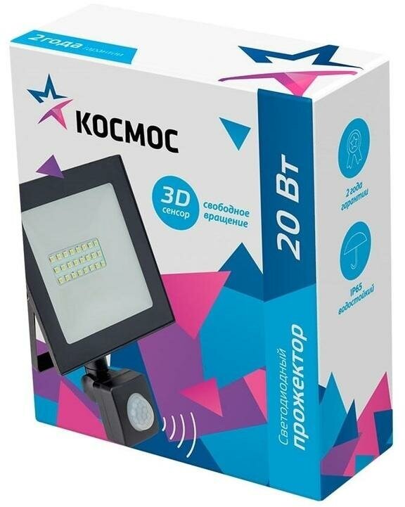 | Доп. наименование Водопад | Прожектор Космос K_PR5_LED_20S светодиодный c датчиком 20Вт Super-Slim |
