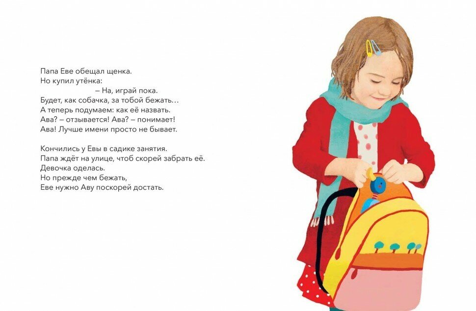 Читайте книгу вслух, рассказывайте собственные истории по иллюстрациям, а еще можно выучить стихотворение наизусть! Важно после прочтения обсудить книгу. Спросите у ребенка: Какая у тебя любимая игрушка? как ты заботишься о ней? мог бы ли ты так же терпеливо ждать подарка? Ева послушная девочка? а чем ты занимаешься в садике? какое у тебя любимое животное?