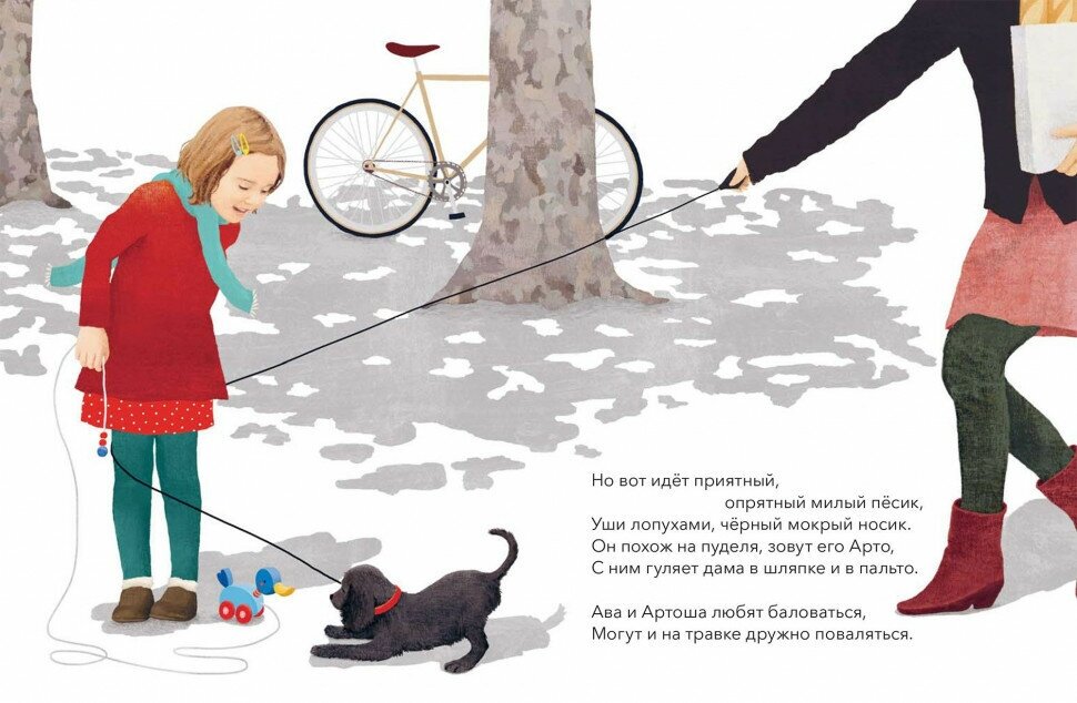 Собственно о книге всё сказано в аннотации. Купила из-за названия, потому что ребёнок любит собак. Удивил карманный формат, но книга понравилась. Она добрая, в стихах и трогательная. Ребёнок готов был утку на верёвке за щенка выдавать, раз собаку пока не покупают, а потребность заботиться о четверолапом уже есть. С лёгким юмором и отличными иллюстрациями в итальянском стиле. И конечно, с хэппи-эндом)