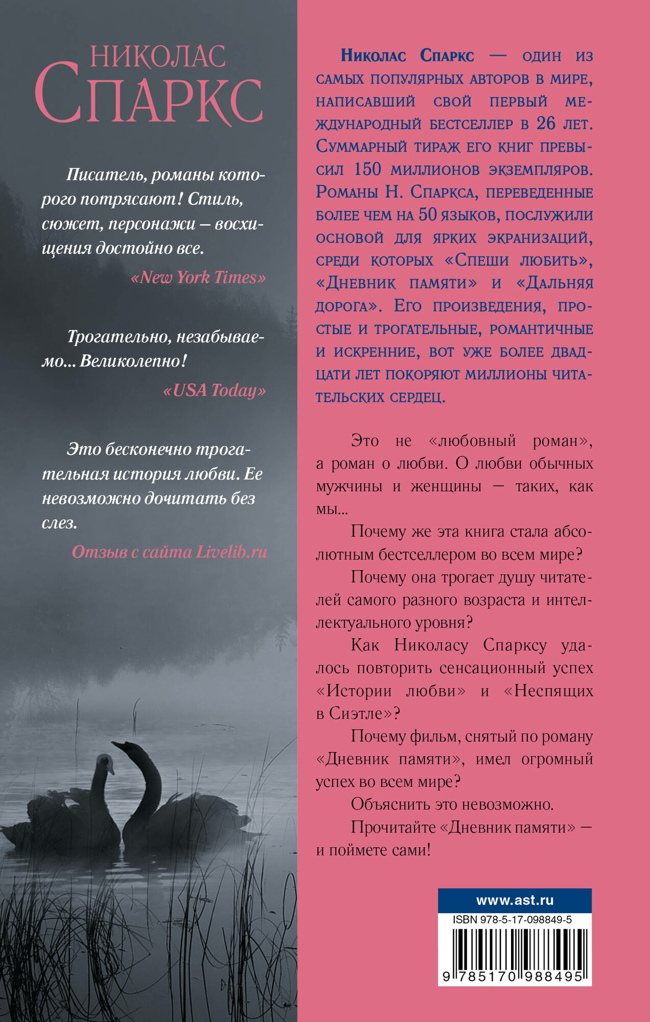 Книга: Дневник памяти (Николас Спаркс); ИЗДАТЕЛЬСТВО "АСТ", 2019