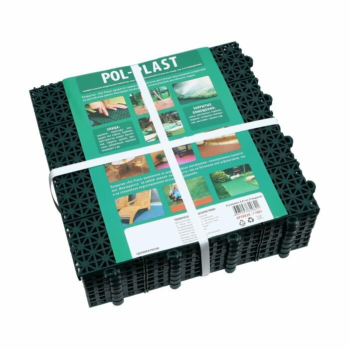 Садовое покрытие Pol-Plast состоит из пластиковых модулей размером 30х30 см, которые прочно скрепляются друг с другом специальными замками. Материал подходит для обустройства любой зоны как в помещении, так и под открытым небом, делает территорию аккуратной, комфортной и эстетичной.