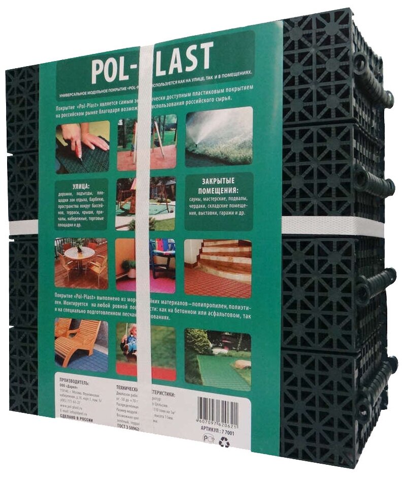 - Универсальные покрытия под торговой маркой PolPlast выпускает российская компания Дарел. Продукция отвечает европейским стандартам качества. Современные материалы, технологии и тщательный контроль на всех этапах производства гарантируют длительную эксплуатацию модульных садовых покрытий.