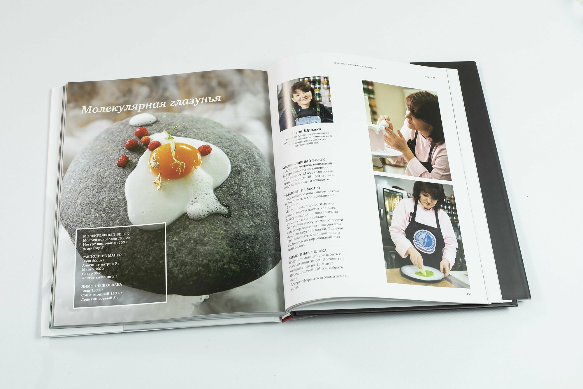Книга большого формата, в твердом переплете, с суперобложкой, отпечатана на белой глянцевой бумаге. Труд иллюстрирован фотографиями кондитеров и их сладкими творениями.