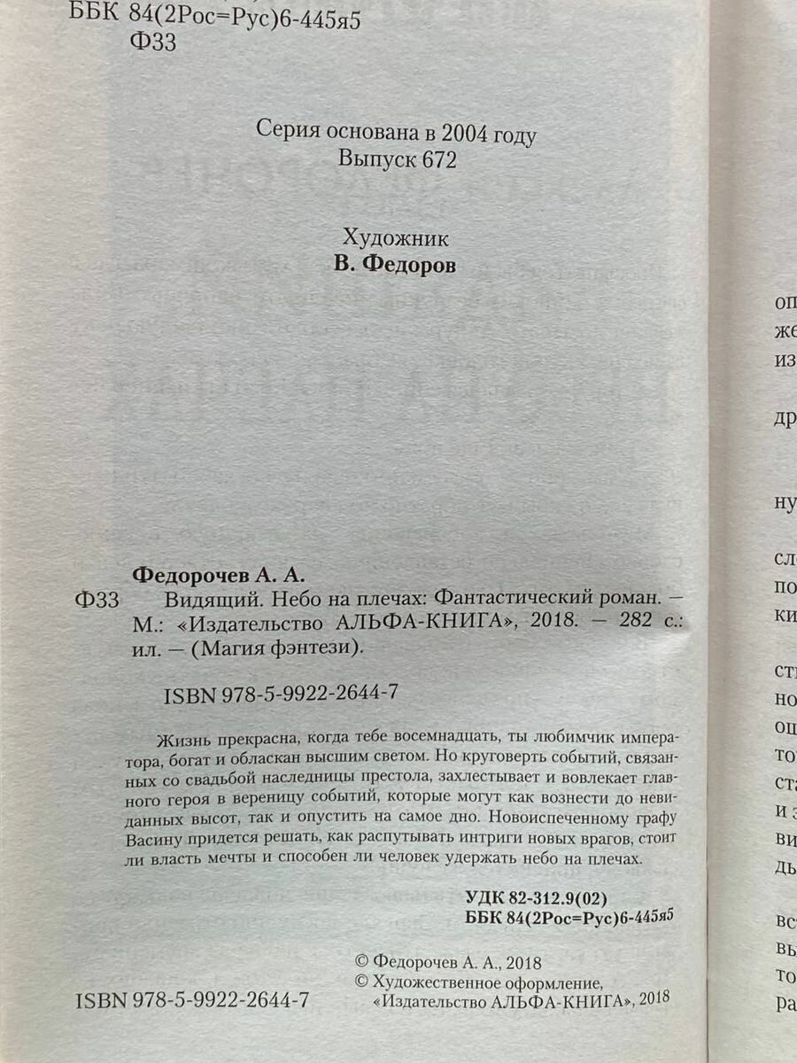 Книга: Видящий. Небо на плечах (Федорочев Алексей Анатольевич); Альфа - книга, 2018