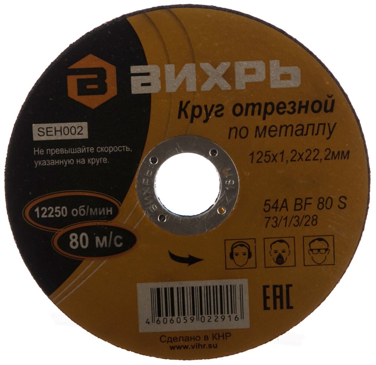 Отрезной диск по металлу Вихрь , для угловых шлифмашин, диаметр 125мм, посадочный диаметр 22.2мм