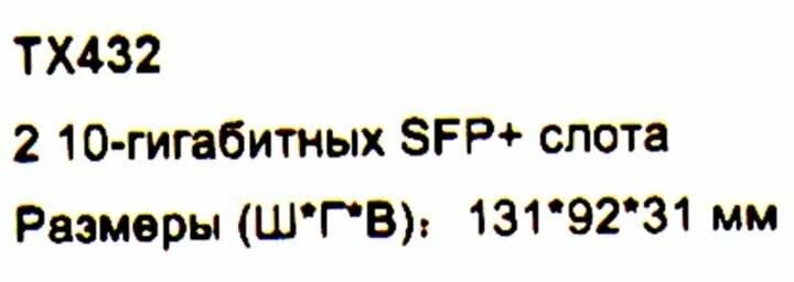 | Назначение | 10-гигабитный 2-портовый модуль SFP+ TX432 – это интерфейсная плата с 2 портами SFP+ 10 Гбит/с |