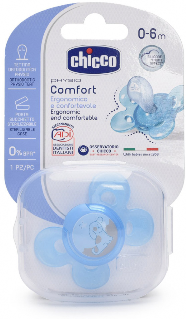 Пустышка Chicco Physio Comfort силиконовая 0-6 мес. Собачка голубой Physio Comfort 0-6 м+