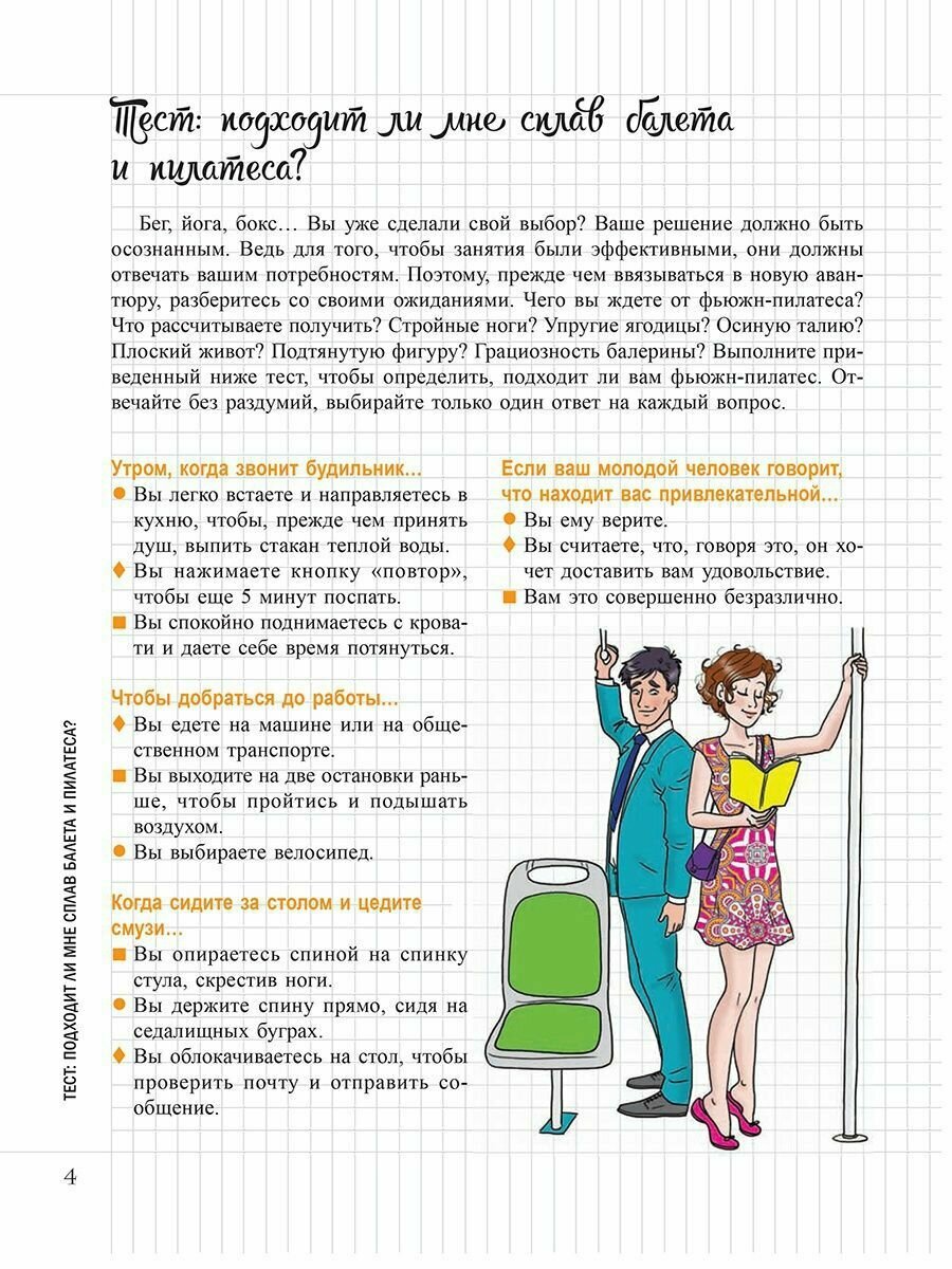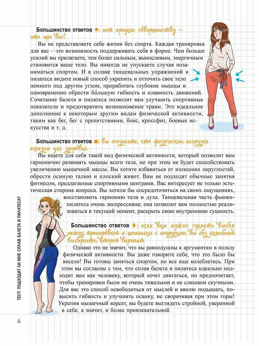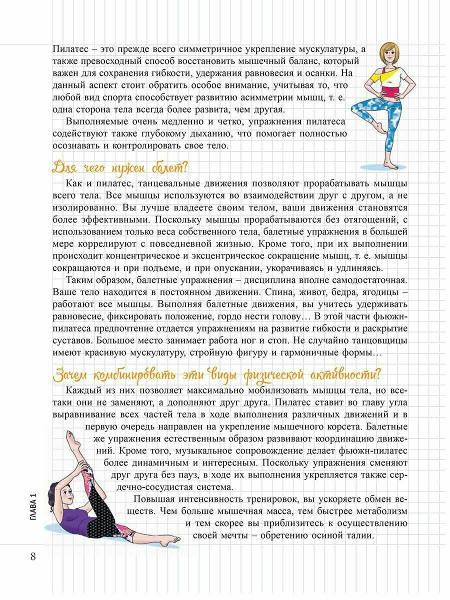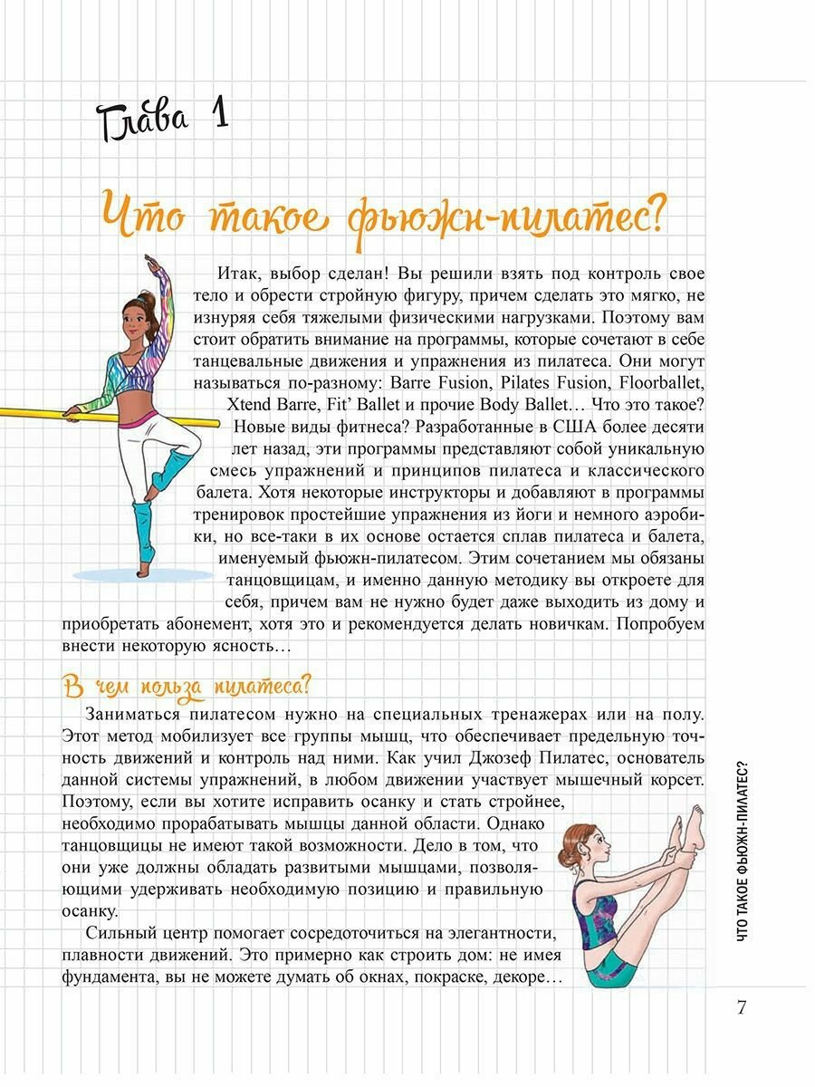 Хотите иметь стройную, точеную фигуру? Это возможно! С помощью фьюжн-пилатеса, представляющего собой сочетание балетных упражнений и пилатеса, вы сможете сжигать калории и качать мышцы с грациозностью танцовщицы. Эта стильная и эффективная форма фитнеса разработана специально для вас! А в качестве чудесного бонуса вы получите царственную осанку балерины. Почувствуйте себя красивой и суперженственной!