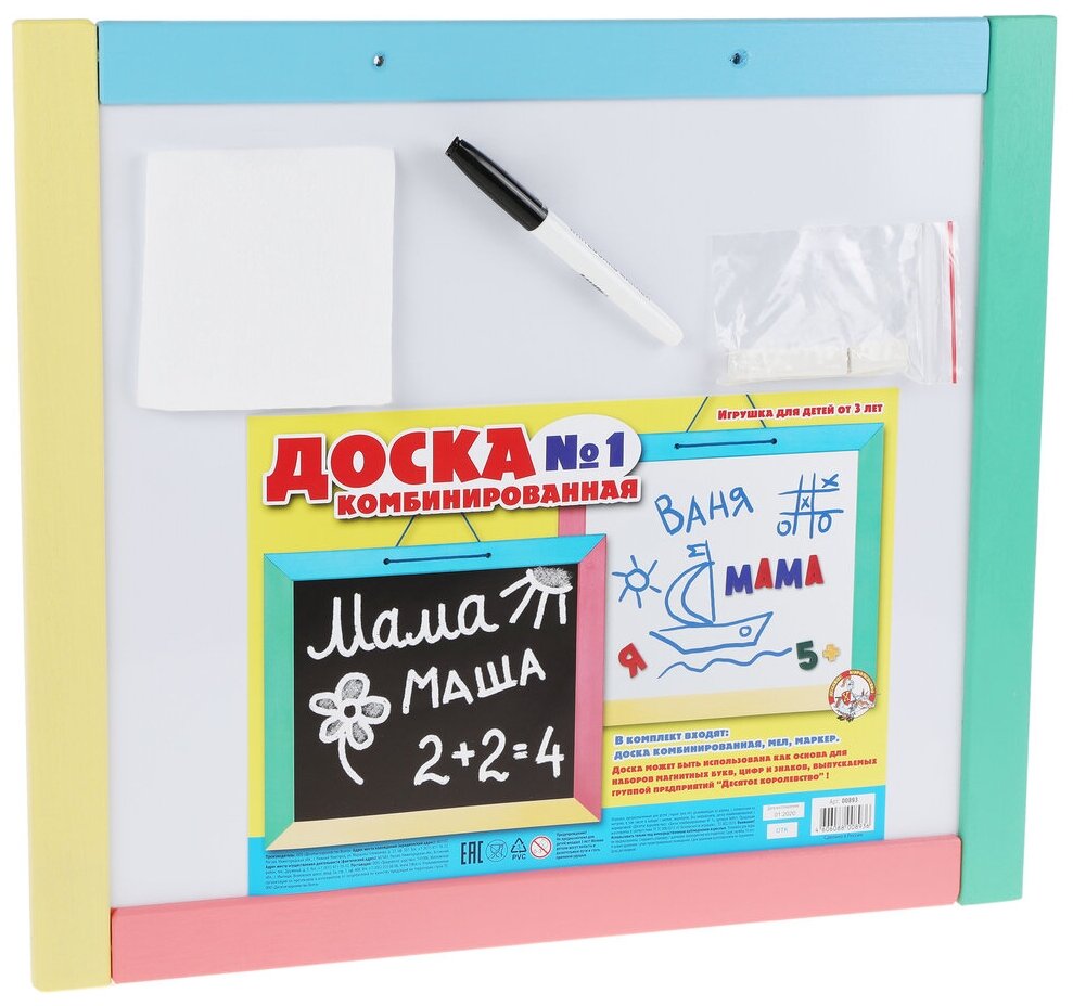 - Обучающая доска магнитно-маркерно-меловая "Весёлые цифры", производитель "Десятое королевство"