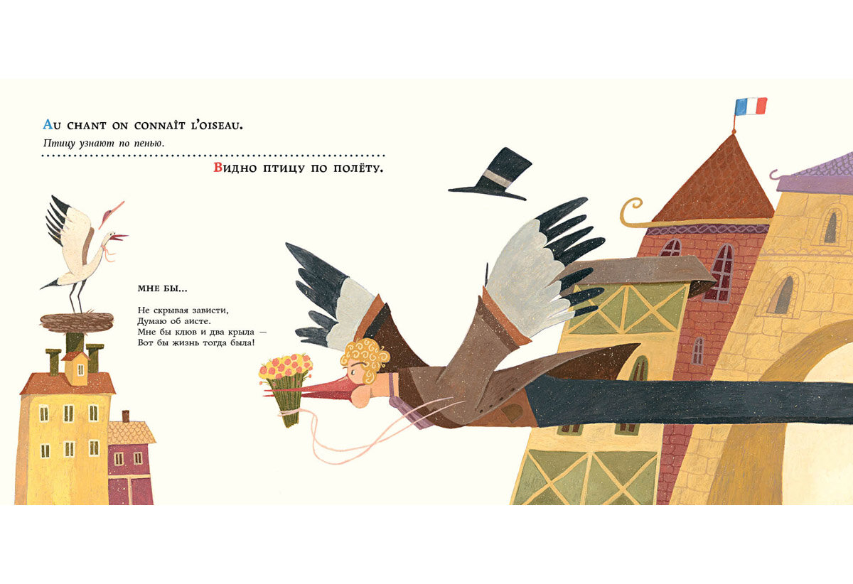 Если вы озабочены расширением словарного запаса дитяти – смело берите! Потрясающая и вместе с тем простая идея: та или иная фраза на французском, перевод на русский язык и небольшой забавный стишок, удобный, кстати, для запоминания и для понимания контекста отлично.