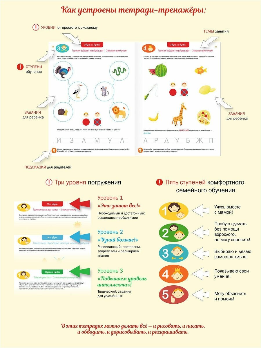 Это полный учебный комплект с понятными целями и выстроенными "сценариями" занятий, организация которых посильна любой заинтересованной в этом семье.