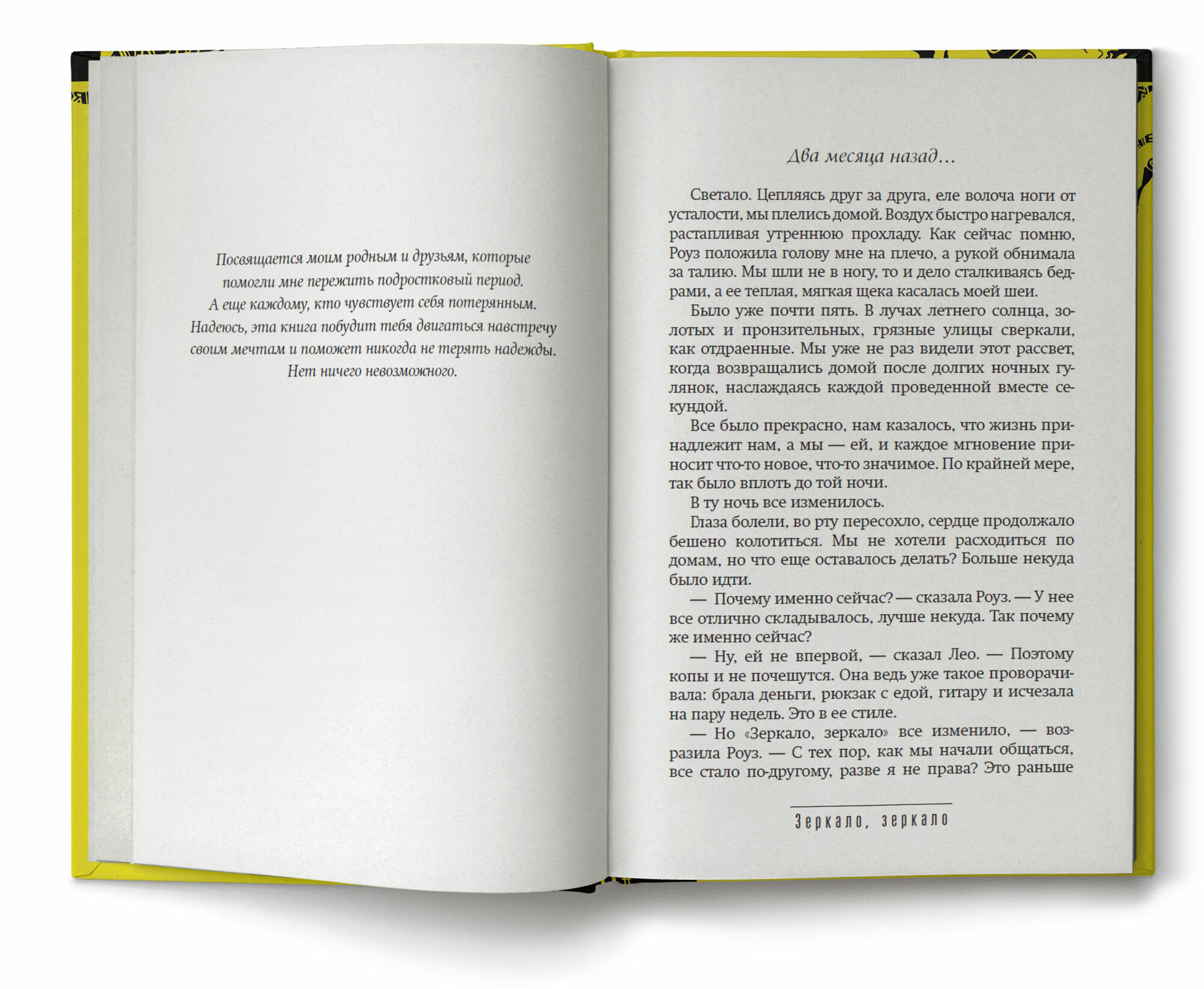 Однажды в журнале увидела рекламу книги "Зеркало,зеркало". Прочитав краткое описание,заинтересовалась ею и не ошиблась!Потрясающая книга о мире подростков!С первых страниц возникает интрига,которую невозможно разгадать до конца.Читается легко и на одном дыхании.Всем 18+ советую ее прочесть!!!