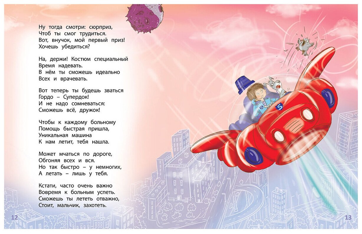 Ваш ребёнок любит играть в доктора, но его пугает даже мысль о визите к врачу? Весёлая и увлекательная история в стихах "Доктор Супердок" познакомит ребёнка с миром медицины и объяснит, почему не надо бояться врачей.