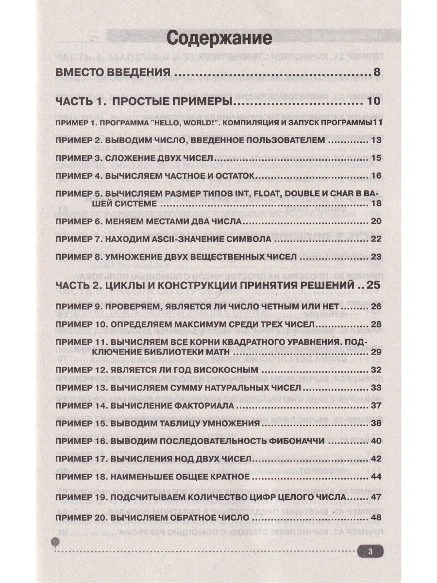 Думаю данный сборник задач, очень пригодится людям, которые не знают, какую программу им написать и людям, которым нужна практика в программировании.При чтении этой книги постоянно стоял на мысли, что данная книга, это просто набор программ, взятых в интернете, которые ленились перевести.Например на рисунке с результатом программы написано Частное = 4, а у меня пишет Quotient = 4, т.к так написано в коде программы.Также в тексте много ошибок в именах функций при описании работы программы.Например в коде программы функция названа reverse, а в описании она названа как reverseSentence.