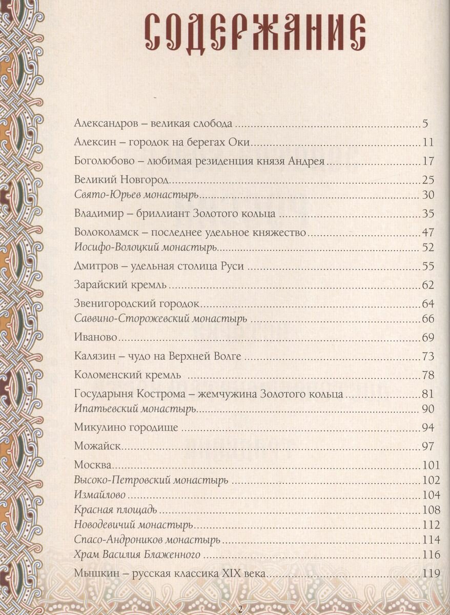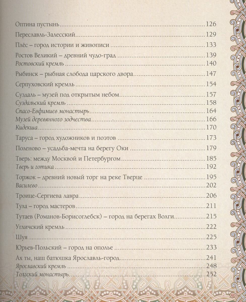В Золотое кольцо России входят старейшие русские города, объекты Всемирного наследия ЮНЕСКО, знаменитые своей архитектурой, самобытностью, историческими тайнами и традиционными народными промыслами. Эти города имеют древнюю историю и поражают богатейшим разнообразием своего культурного наследия. Об истории, достопримечательностях, народных промыслах и традициях этих прекрасных городов вы прочитаете на страницах этого иллюстрированного издания.