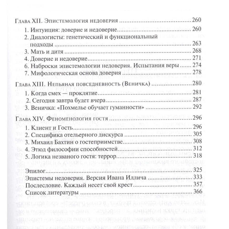 Феноменологически очевидно: недоверие порождает когнитивные диссонансы и войны, доверие — конформистов и предателей. Исходя из этого, авторы исследуют возможности «эпистемологии недоверия» как инструмента, позволяющего понять нашу парадоксально-абсурдную повседневность. Замысел книги — прояснить перспективы усиления жизнестойкости мирян. Феномен жизнестойкости рассматривается здесь в горизонте трех возвышенных идеалов: достойного и грациозного искусства жить (art de vit); бестелесного события смысла (исповеди-откровения); изобретения оригинального концепта (философской или научной идеи, революционным образом изменяющей сознание современников). В книге специально исследуются феномены «одиночества» и «смеха» — показатели жизнестойкости персоны, выступающей под маской сочиненного концептуального персонажа (репертуарно-ролевого набора).