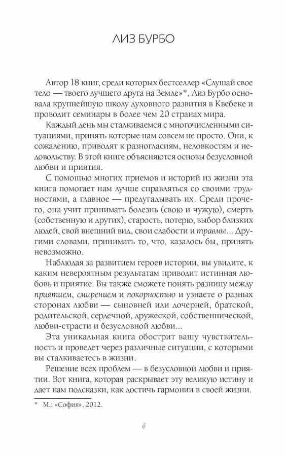 Лиз Бурбо, любимый миллионами автор серии «Слушай свое тело», написала не совсем обыкновенную книгу. Ее уроки построены на беседах с реальными людьми и их историях — грустных, смешных и трагических.