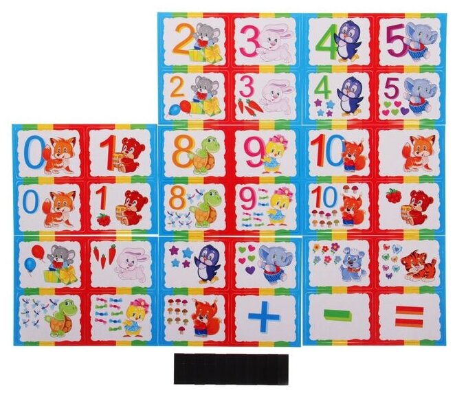 С набором букв и цифр на магнитах ваши с малышом занятия станут намного интереснее продуктивнее: складывать разные слова и решать простые примеры можно на любой металлической поверхности. Милые зверята, будто сошедшие с советских открыток и маленькие подсказки помогут малышу легко запомнить и азбуку, и счет. На карточках с алфавитом вы найдете изображения большой буквы, смешного персонажа, который позже будет ассоциироваться с ней, и слово, начинающееся с этой буквы. В подарок - три карточки для раскрашивания, которые просто превратить в магнит. На карточках со счетом использована успешная методика запоминания: 10 карточек с цифрой и животным, 10 карточек с цифрой, животным и предметами-подсказками, 10 карточек с животным, предметами-подсказками и без цифры, а также три знака: +, - и =. Учимся, играя!