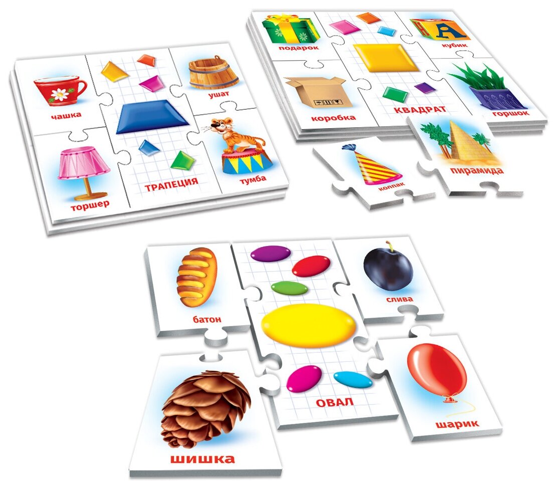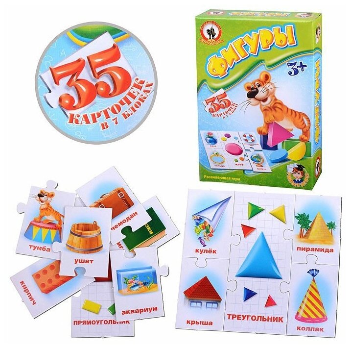 | Состав набора | 35 карточек с изображениями различных предметов и геометрических фигур |