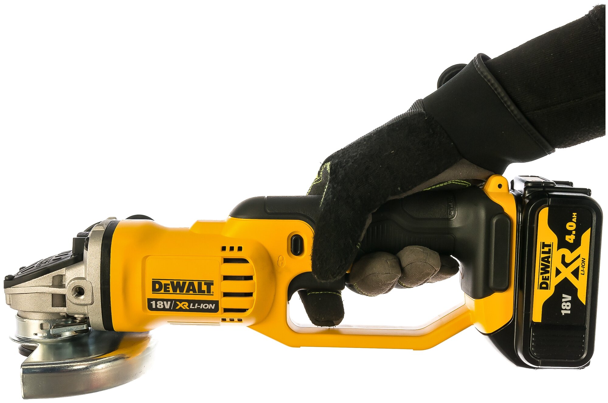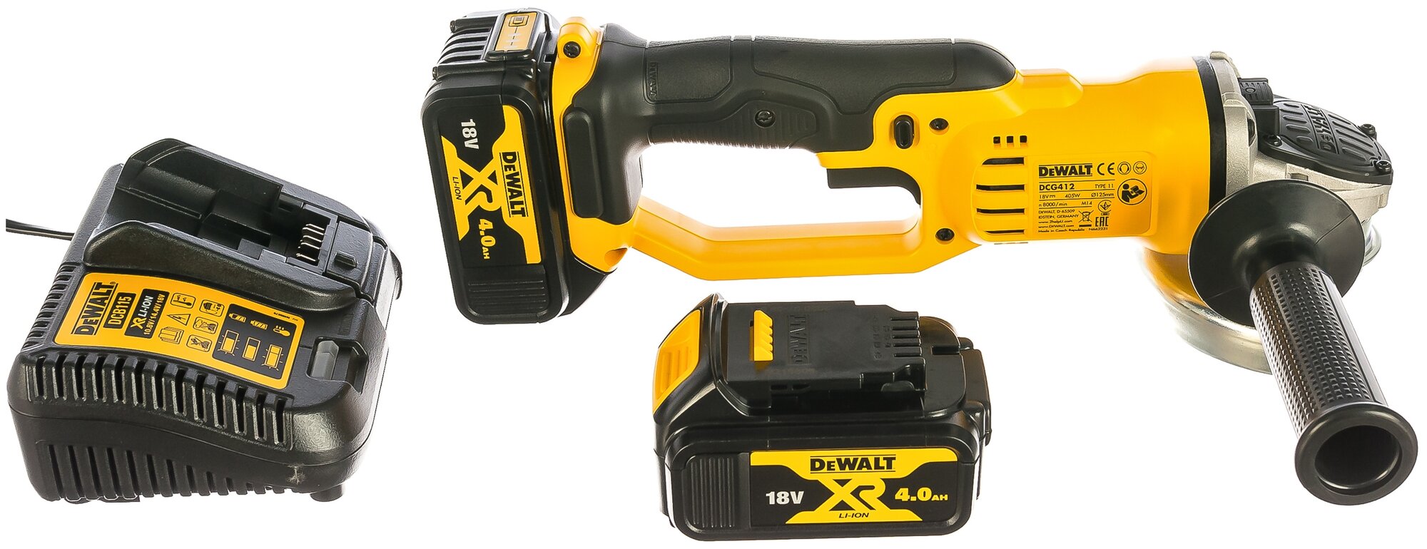 DeWALT DCG412M2 — мощная и надежная угловая шлифмашина с новыми уникальными аккумуляторами технологии XR Li-Ion емкостью 4 А*ч. Специализируется на резке, зачистке и шлифовке металла и камня. Инструмент используется в строительно-ремонтных и демонтажных работах. DeWALT DCG412M2 — превосходно сбалансированный инструмент. Устройство действует с потребляемой мощностью 405 Вт. Мощный электродвигатель обеспечивает скорость вращения в 7000 об/мин.