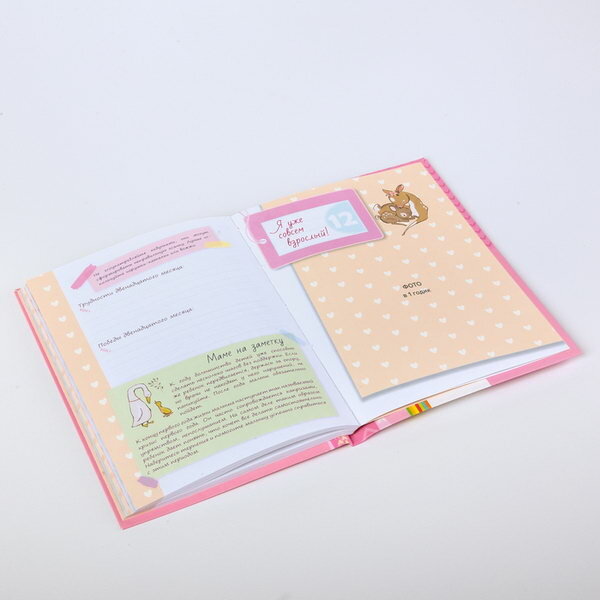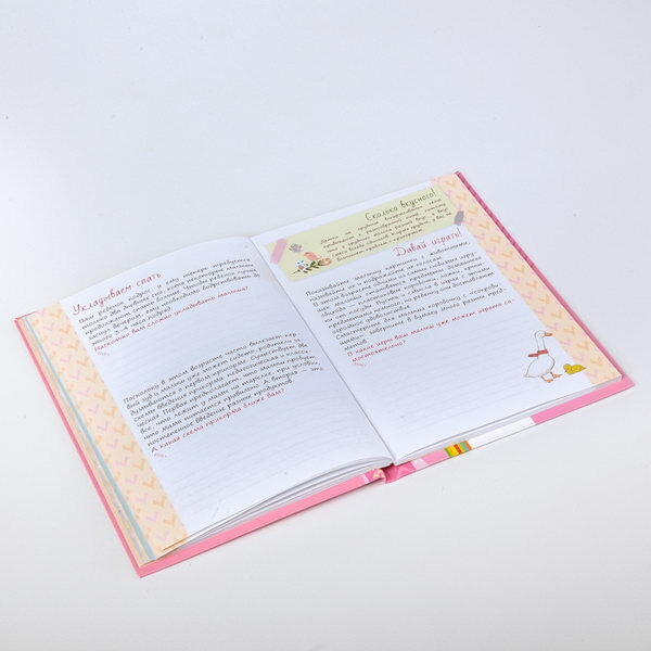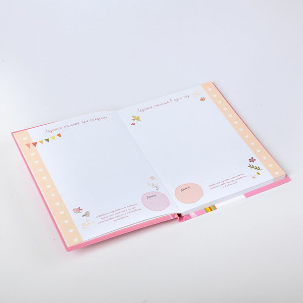 Вот и произошло самое долгожданное событие в вашей жизни - вы стали мамой. И конечно, вас уже волнуют вопросы, правильно ли развивается малыш, вовремя ли приобретает необходимые навыки. Благодаря нашему альбому вы не только сохраните в памяти события первого года жизни малышки, но и узнаете, какие навыки присущи ребенку в каждый конкретный месяц, найдете ответы на самые распространенные вопросы, касающиеся ухода за малышом, а также сможете записать свои наблюдения и вклеить фотографии. Поверьте, это будет интересно не только вам, но и малышу, когда он подрастет. В альбом можно вклеить не менее 45 фотографий размером 10х15 см. Место под фотографии оформлено так, что можно вклеить и более маленькие изображения или сделать коллаж. На последнем развороте предлагается каждый месяц вклеивать 12 фотографий 5х5,5 см с изображением малыша по мере его взросления в течение года.