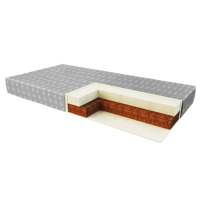 Кокосовая койра – материал, получаемый из натурального природного продукта. Спина у ребенка до двух лет совершенно прямая, поэтому малышу необходим жесткий матрас. Без кокосовой койры достичь жесткости невозможно. Стеганый чехол из экобязи. Ткань экологичная, гипоаллергенная, износостойкая. Хорошо стирается, пропускает воздух, приятная на ощупь. Синтепон обеспечивает нужную мягкость и эластичность изделия. Он позволяет чувствовать себя комфортно как в холодные зимние, так и в жаркие летние ночи. Материал, изготовленный согласно уникальной технологии, суть которой состоит в вертикальной укладке нитей. Нити скручиваются в спирали. Благодаря такому способу достигается усовершенствованная восстанавливаемость объема.
