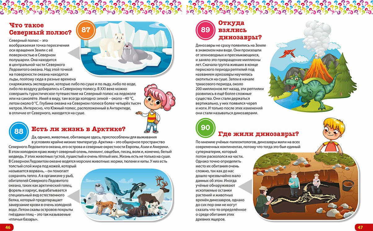 В этой энциклопедии кратко и понятно даны ответы на самые часто задаваемые детьми вопросы: от тайн Вселенной и загадок животного мира до секретов природы и строения человека. Читайте вместе с ребёнком нашу книгу, рассматривайте яркие картинки и получайте новые знания!