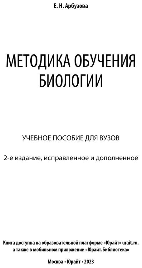 Методика обучения биологии (Елена Николаевна Арбузова); ЮРАЙТ, 2018