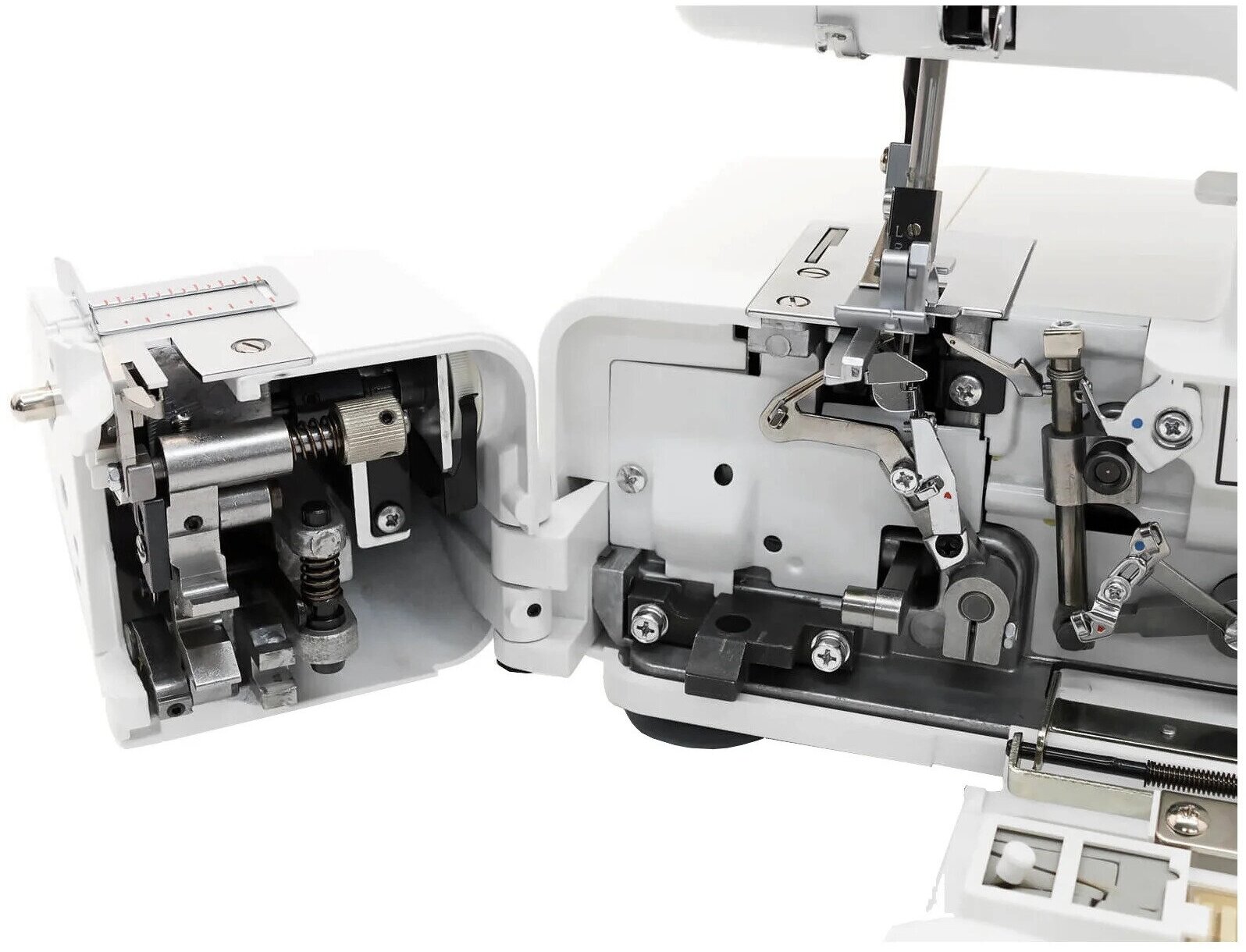 | Особенности | Выполняет 2-х, 3-х, 4-х ниточные швы. Дифференциальный транспортер подачи ткани(для посадки или растяжки трикотажного полотна). Возможность регулирования длины стежка и ширины строчки, максимальная ширина строчки – 7 мм, максимальная длина стежка – 4 мм. Возможность отключения ножа, возможность перенастройки на роликовый шов (опиковка) Очень удобная и облегчённая заправка ниток, облегчённое регулирование натяжения ниток, регулятор давления лапки на ткань, яркое светодиодное (LED) освещение, скорость шитья – 1300 об/мин, работает со всеми типами ткани, в т.ч. эластичным синтетикой,трикотажем, лапки для вшивания бисера и потайного шва – в комплекте |