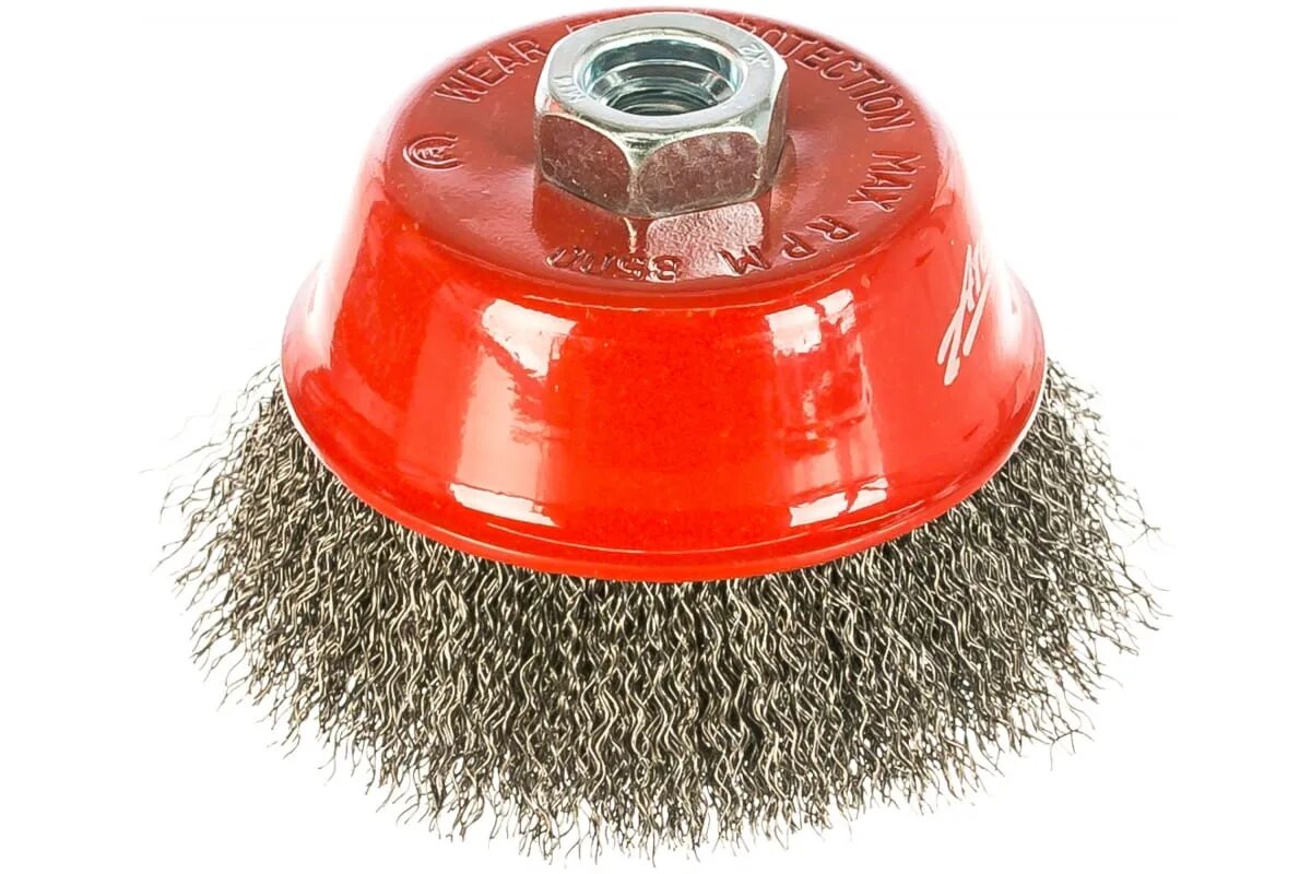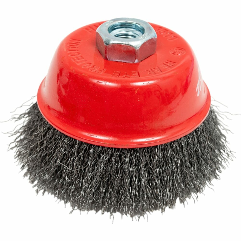 Щетка предназначена для широкого спектра работ при помощи углошлифовальной машины. Позволяет удалять ржавчину, старую краску, очистку сварных швов, удалению заусенцев, окалины, матирования, придания шероховатости и т.д. Прямая металлическая проволока.