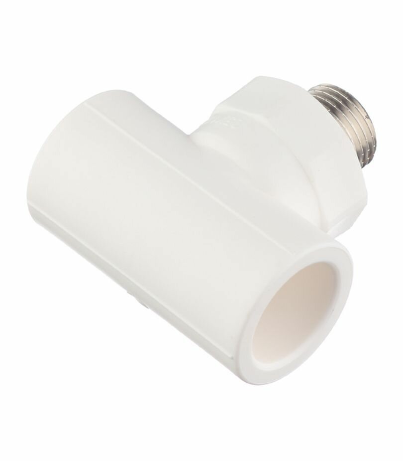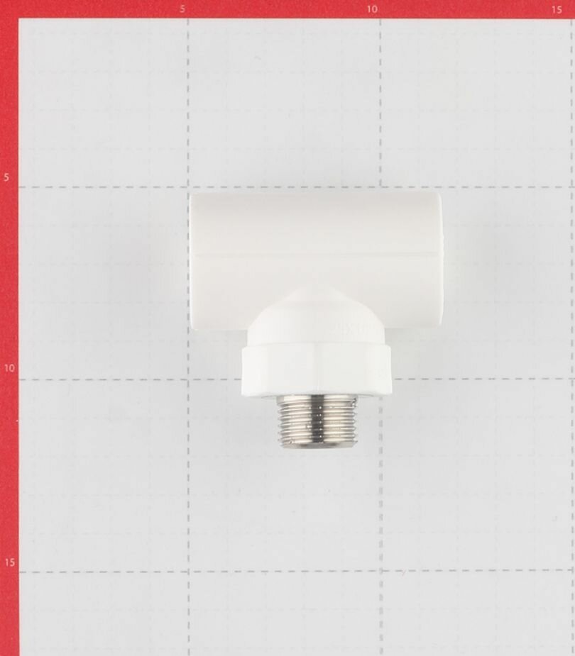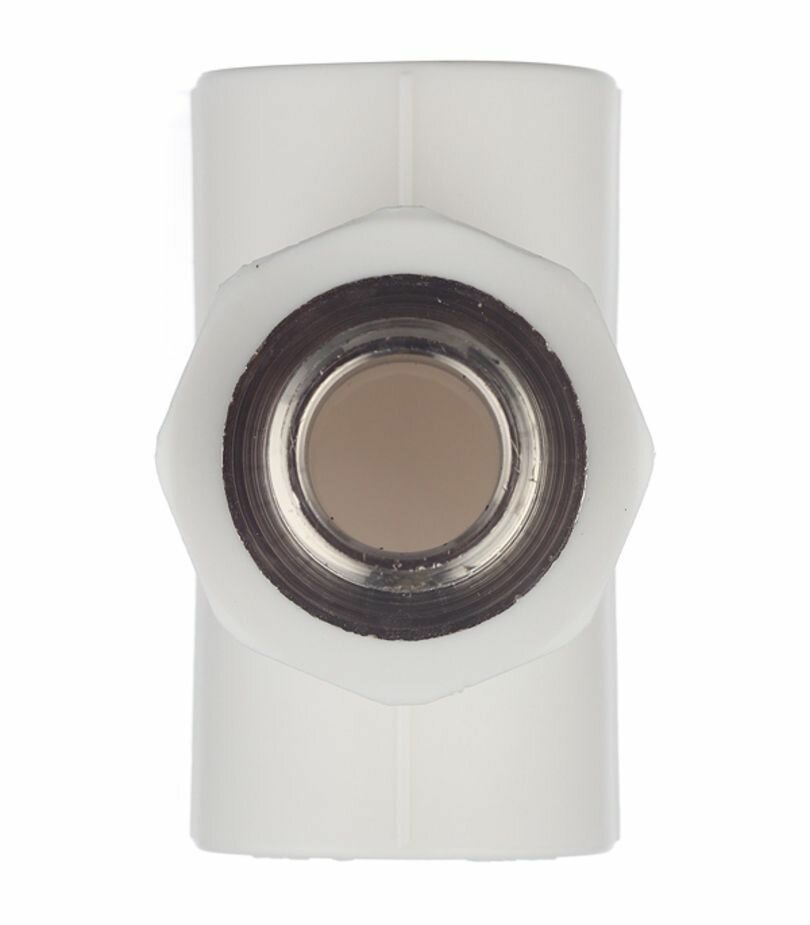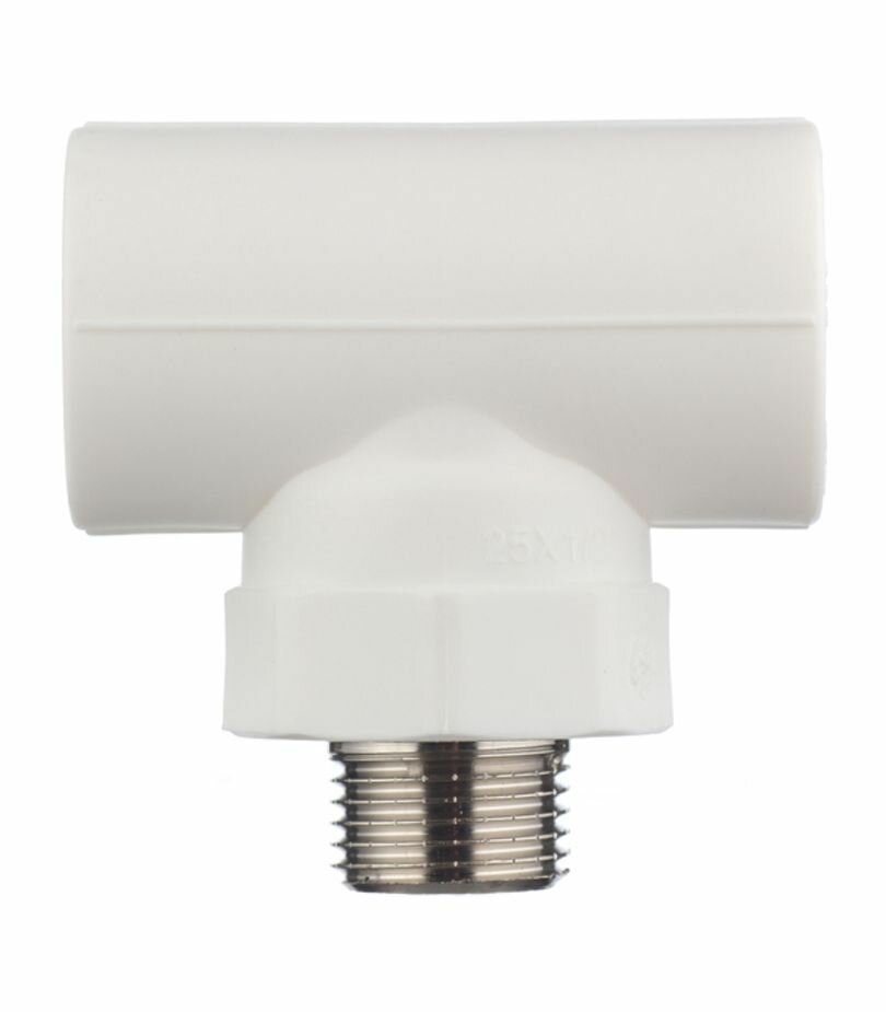 Трехсторонний металлопластиковый фитинг для подсоединения к полипропиленовому трубопроводу компонента инженерной системы с резьбовым подключением. Резьба фитинга - внутренняя трубная, 25 х 1/2 , по ГОСТу 6357.