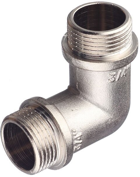 Угловой латунный никелированный фитинг. Резьба - наружная/наружная, 3/4 , цилиндрическая трубная по ГОСТу 6357 (ISO 228, EN 10226). Серия VTr.093.N