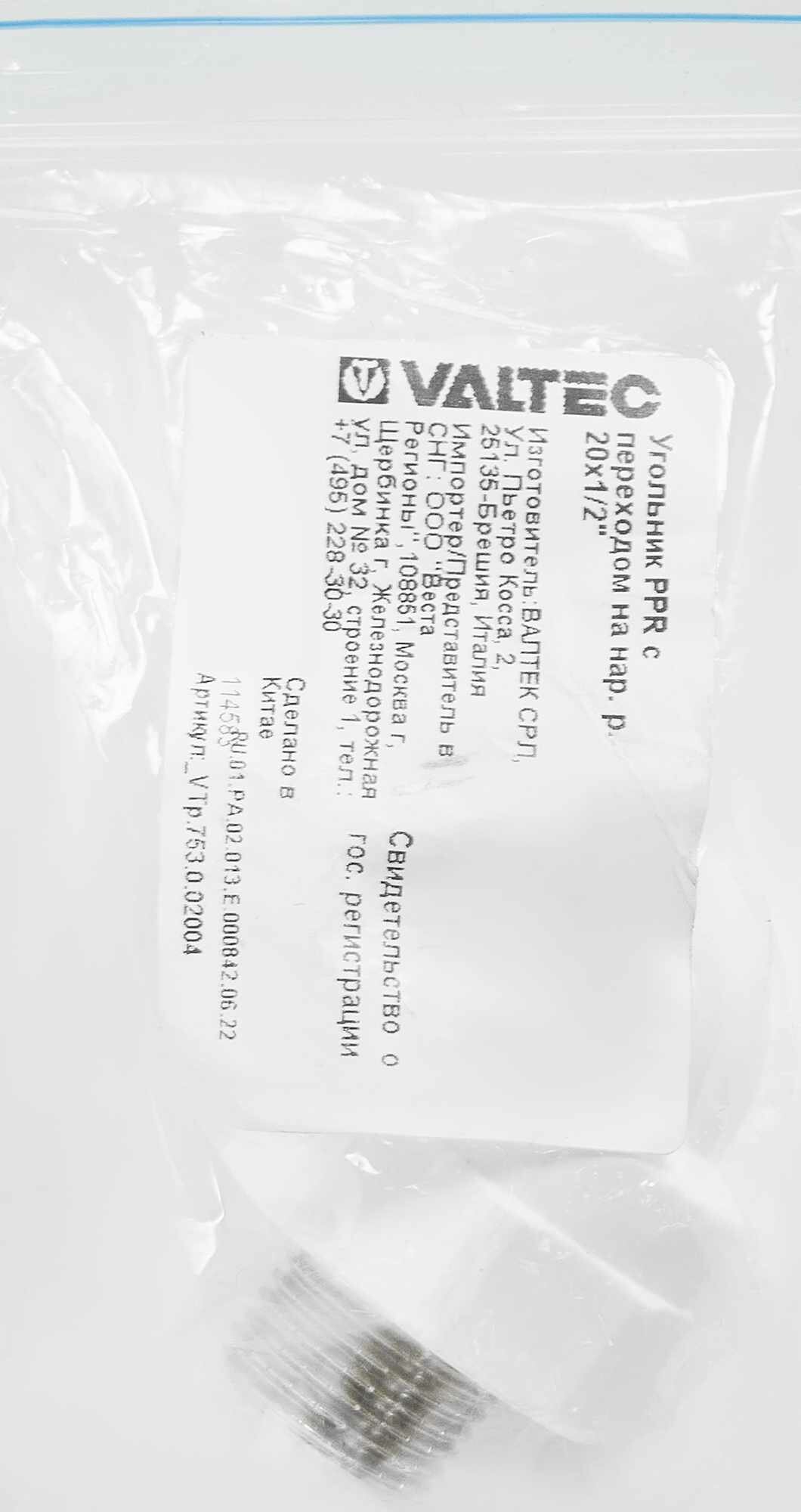 Модель: Угольник Valtec ПП с переходом 20 х 1/2"